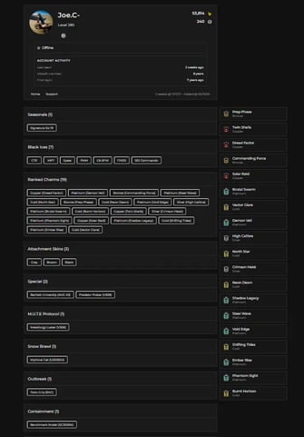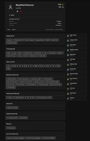 🎮 PC/Ubisoft | Level 208 | 6x BLACK ICE | 3x Legendary | 49x Epic Skins | 5+ Year Veteran Account | Instant Delivery ⚡