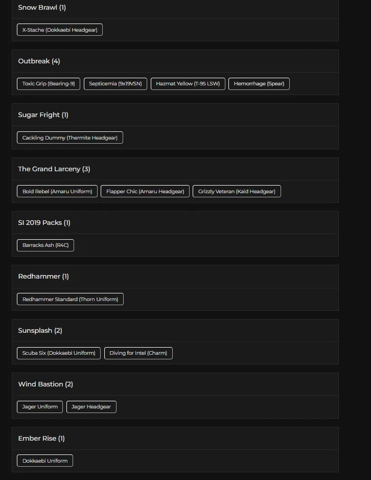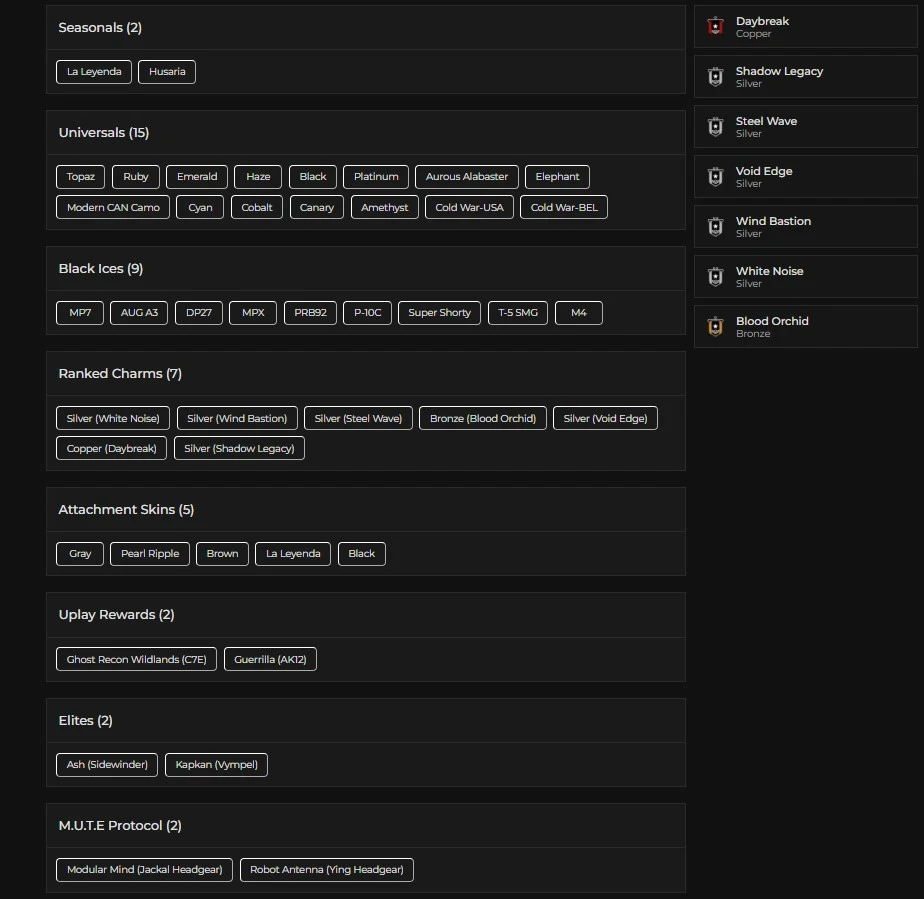 [UPLAY] 132 LVL ⸱ 9X BLACK ICES ⸱ 15X UNIVERSALS ⸱ 2X SEASONALS ⸱ 4X OUTBREAK ⸱ 72 OPERATORS ⸱ 7K RENOWN ⸱ FA