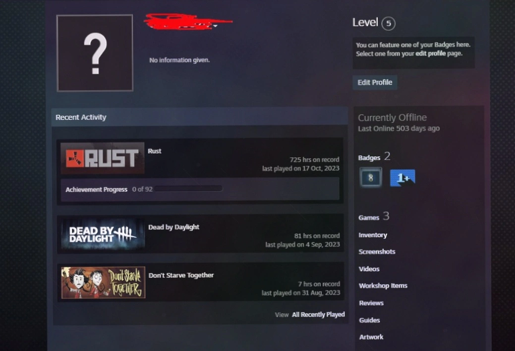8 Years old Steam+5 LVL+RUST with 700+ AFK HOURS+Don't Starve Together Game+Full Access+Instant Delivery 24/7 #LOT-163732