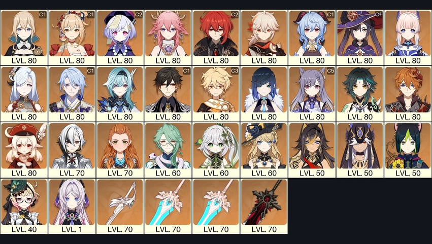 💙[Europe] AR 56 💙 26x Five Stars 💙 57 Chars 💙 Clorinde C1 & Kinich & Kazuha & Hu Tao & Qiqi & Xiao C1 & Wanderer & Yoimiya & Klee & Diluc C3 & Mona C1 & Cyno & Jean C2 & Tighnari & Dehya 💙