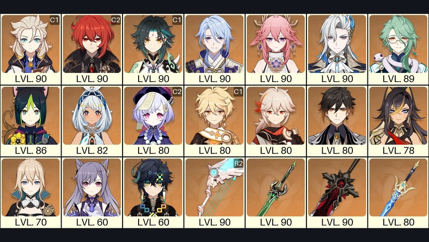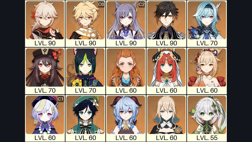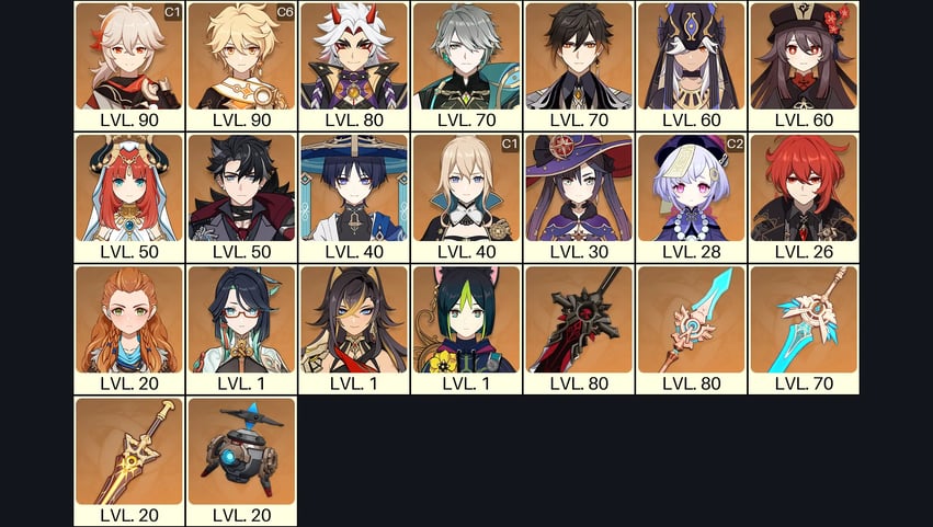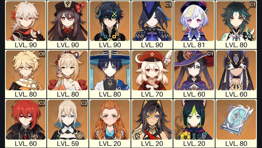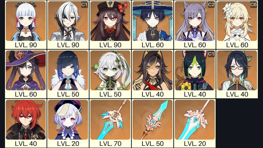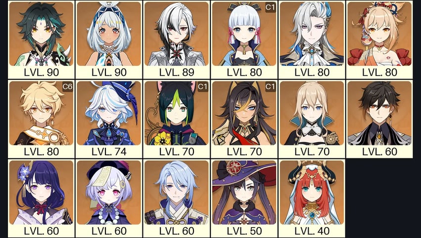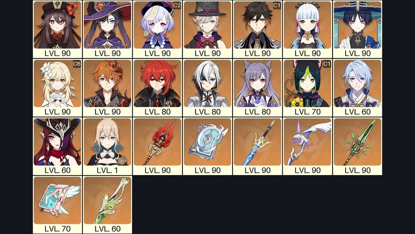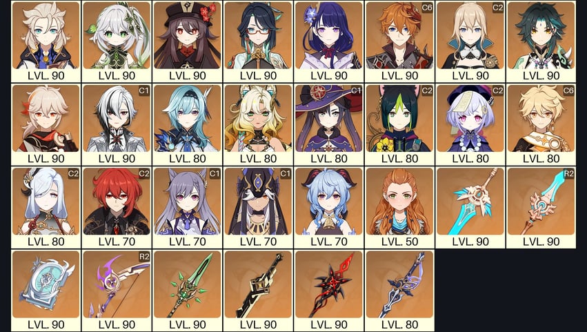 💙[Europe] AR 60 💙 52x Five Stars 💙 63 Chars 💙 Tartaglia C6 & Jean C2 & Arlecchino C1 & Raiden & Hu Tao & Xianyun & Nahida & Kazuha & Xiao & Albedo & Qiqi C2 & Shenhe C2 & Tighnari C2 & Mona C1 & Xilonen & Eula & Diluc C2 & Keqing C1 & Cyno C1 & Ganyu 💙