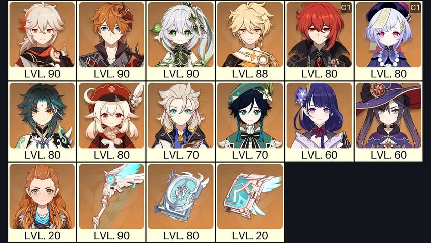 💙[America] AR 57 💙 18x Five Stars 💙 40 Chars 💙 Nahida & Tartaglia & Kazuha & Diluc C1 & Qiqi C1 & Klee & Xiao & Albedo & Venti & Raiden & Mona 💙
