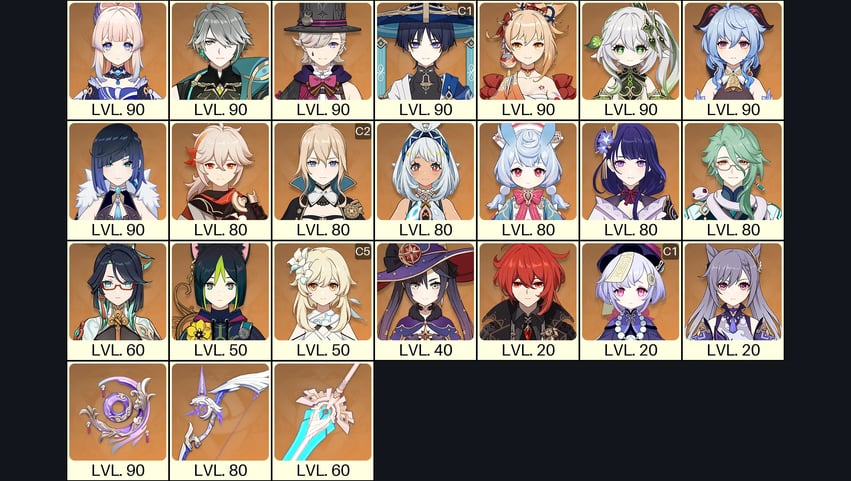 💙[Europe] AR 57 💙 28x Five Stars 💙 60 Chars 💙 Wanderer C1 & Lyney & Nahida & Yelan & Kokomi & Yoimiya & Ganyu & Alhaitham & Jean C2 & Raiden & Kazuha & Baizhu & Sigewinne & Mualani & Xianyun & Tighnari & Mona & Qiqi C1 & Diluc & Keqing 💙