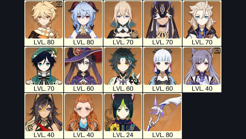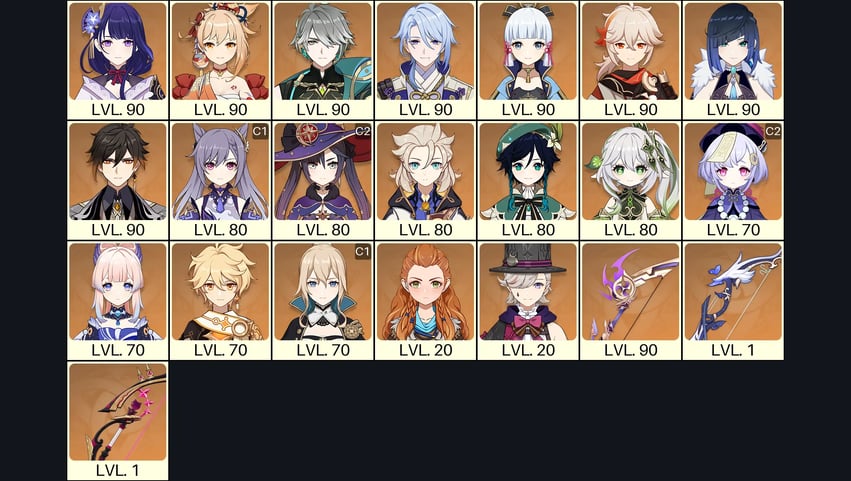 💙[Europe] AR 57 💙 20x Five Stars 💙 59 Chars 💙 Mualani & Xiao & Arlecchino & Ayaka C1 & Neuvillette & Yoimiya & Furina & Dehya C1 & Tighnari C1 & Jean & Zhongli & Qiqi & Raiden & Ayato & Mona & Nilou 💙
