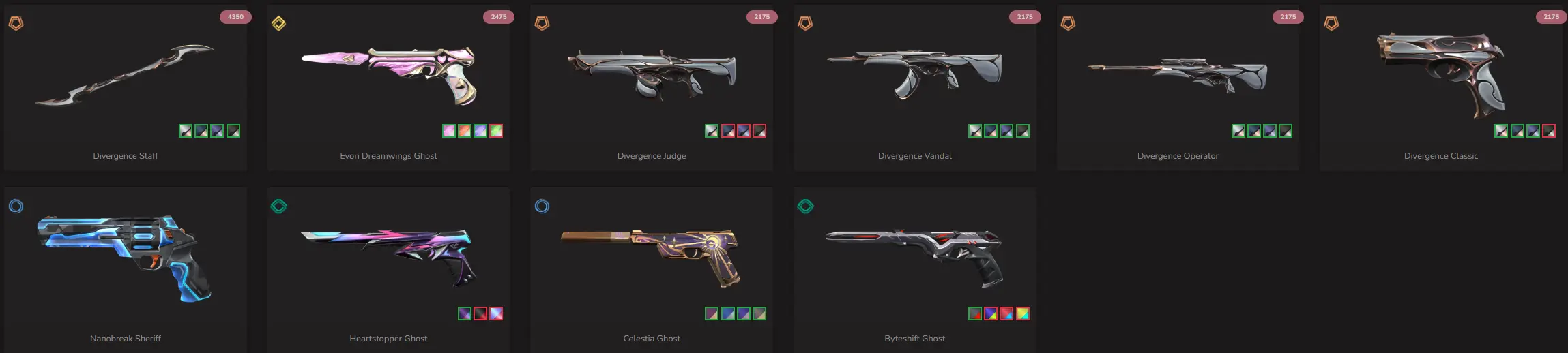 🎯 10 SKINS ⸱ NA REGION | 📹 VIDEO: imgur.com/a/yGdddGe | DIVERGENCE BUNDLE, EVORI DREAMWINGS GHOST & MORE [V719]