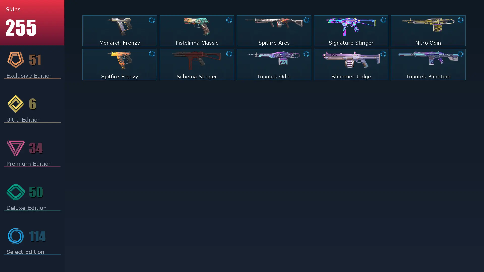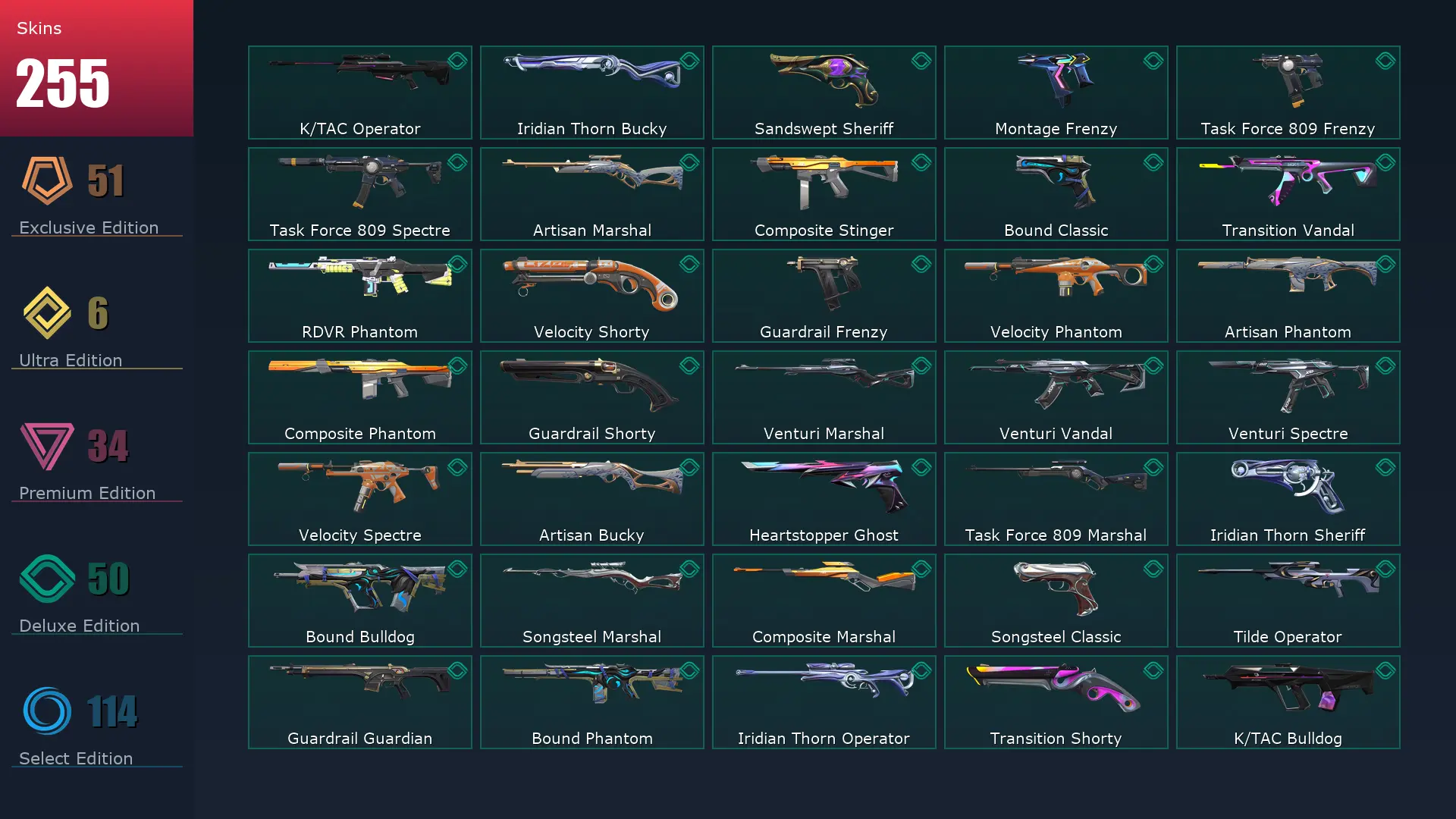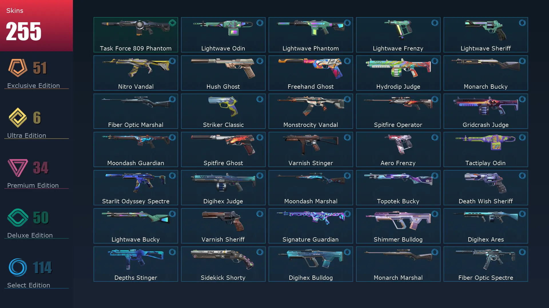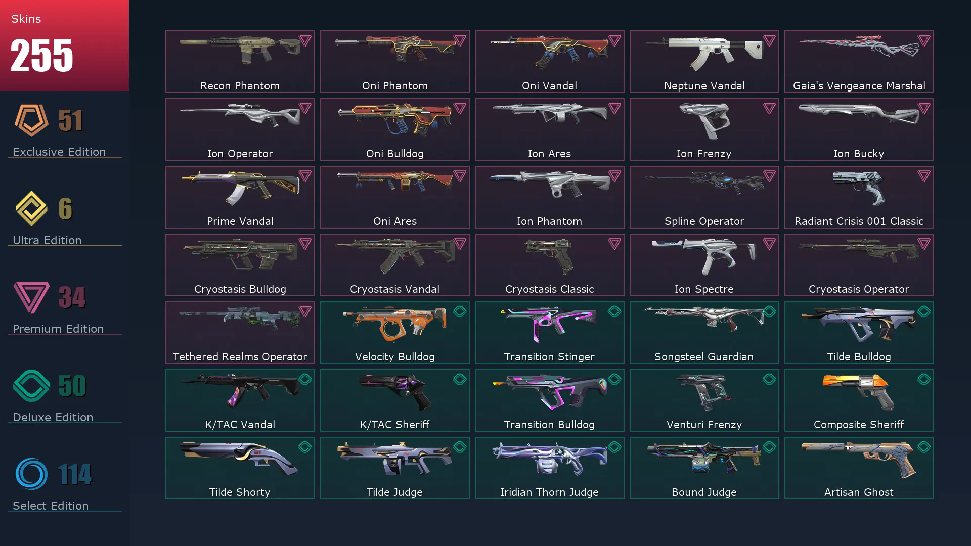 EU 🐳 255 Skins 🥖 Ascendant 2 📏 29 Agents 🪰 470 Level 🎤 Champions 2022 Phantom 🧆 Champions 2023 Vandal 😲 Champions 2023 Kunai 🧊 Champions 2022 Butterfly Knife 🪽 Glitchpop Judge 🌙 Glitchpop Dagger 🎃 Reaver Karambit