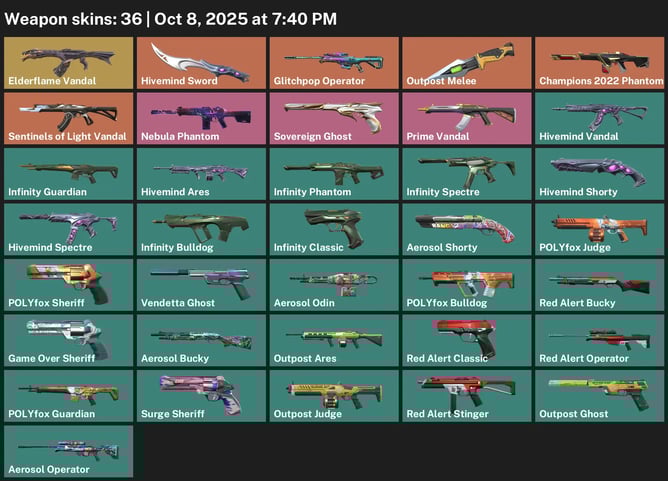 EU | Unranked | Inventory Value 5325 VP | 4 Skins | Origin Crescent Blade | Forsaken Vandal | Coalition: Cobra Judge | Hue Shift Shorty | Full Access #6380