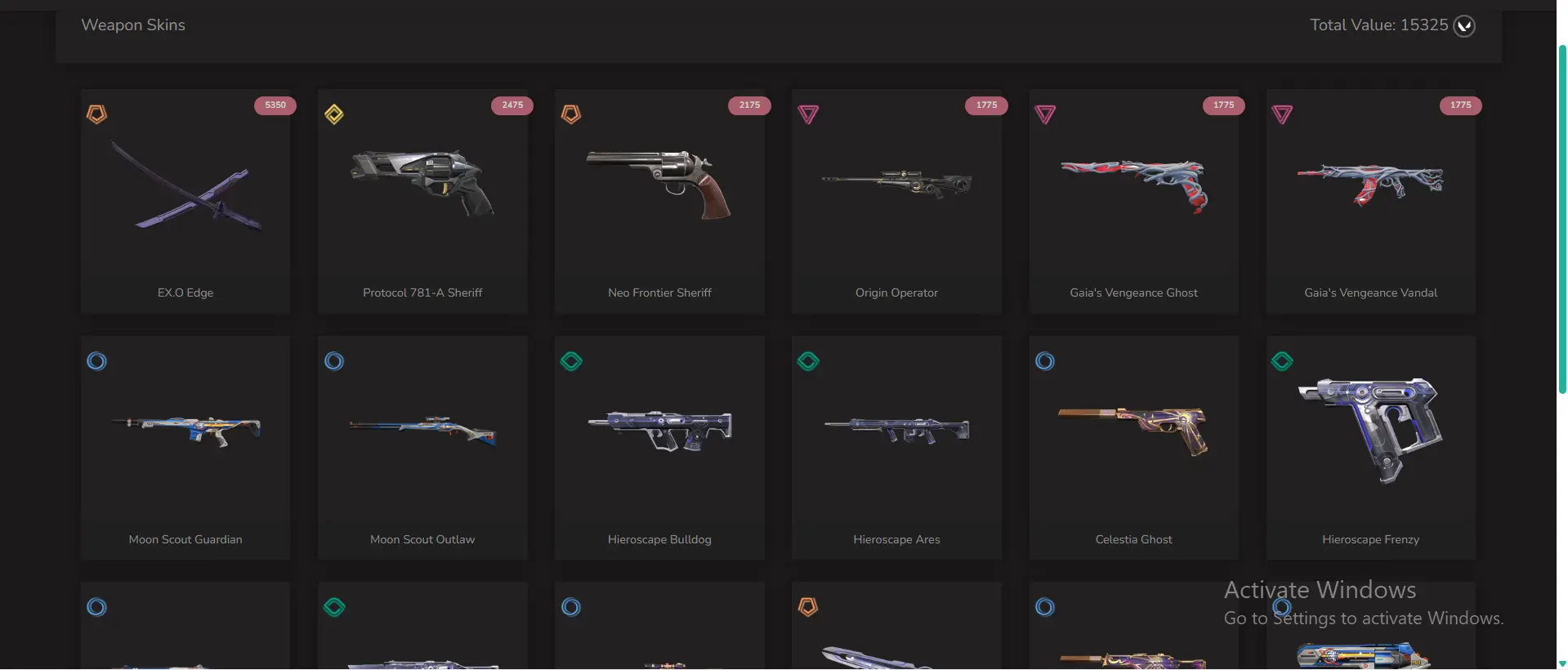 Gaia's Vengeance Vandal + Origin Operator + EX.O Edge + Protocol 781-A Sheriff + Neo Frontier Sheriff + Gaia's Vengeance Ghost + TOTAL 16325VP SPENDED + Mail Changeable | Check Description.