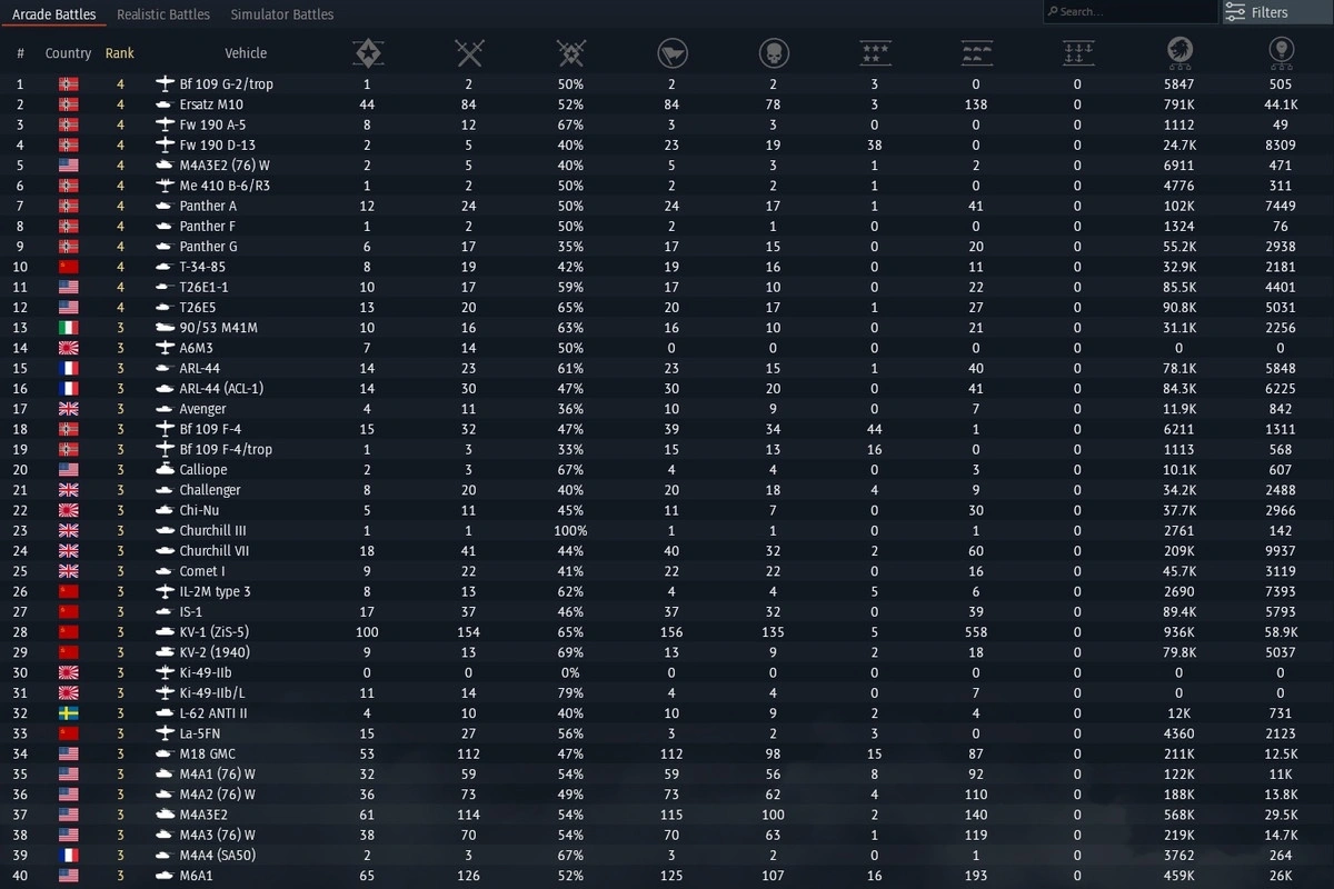 ●Ersatz M10●KV-2(1940)●Partisan ●T-34-57(1943)●AEC Mk II●Tu-2