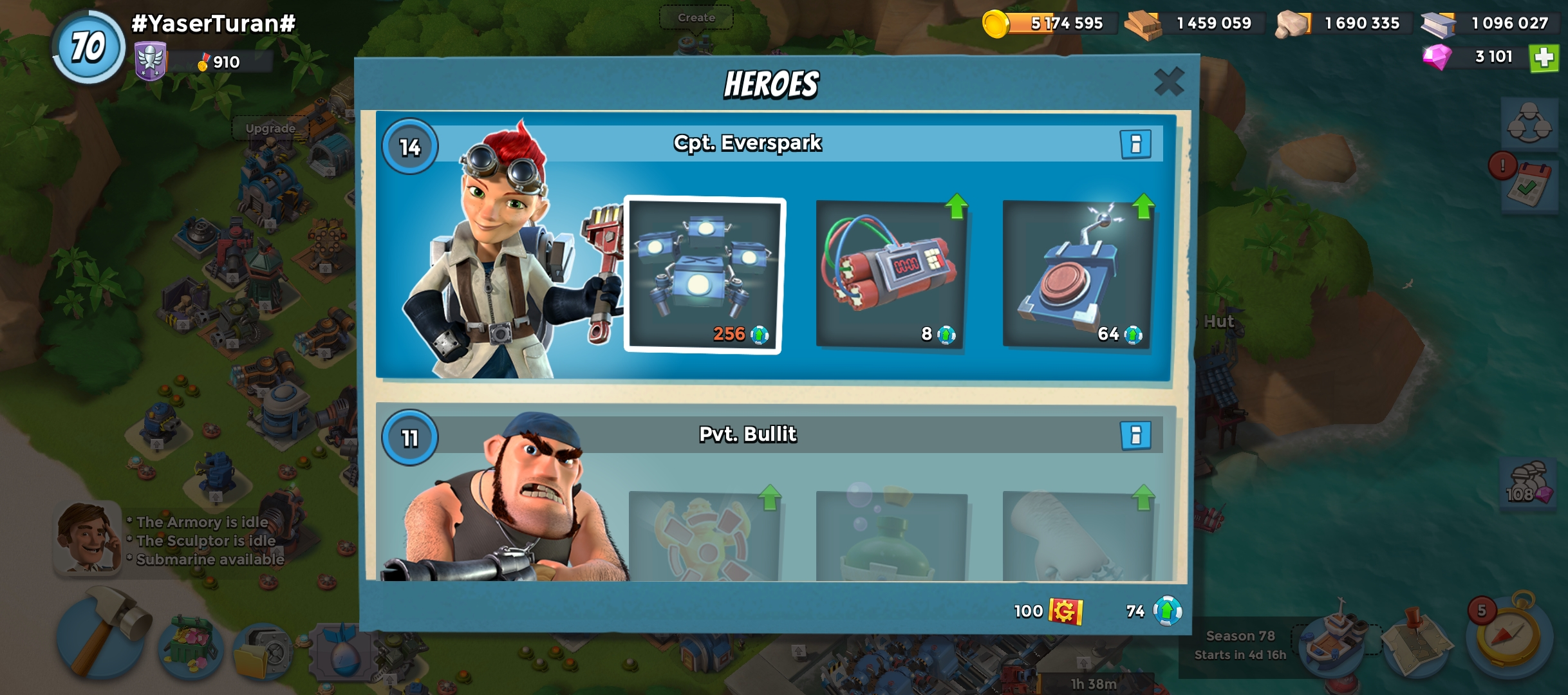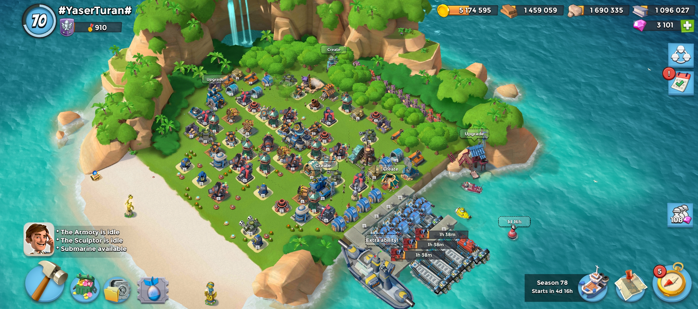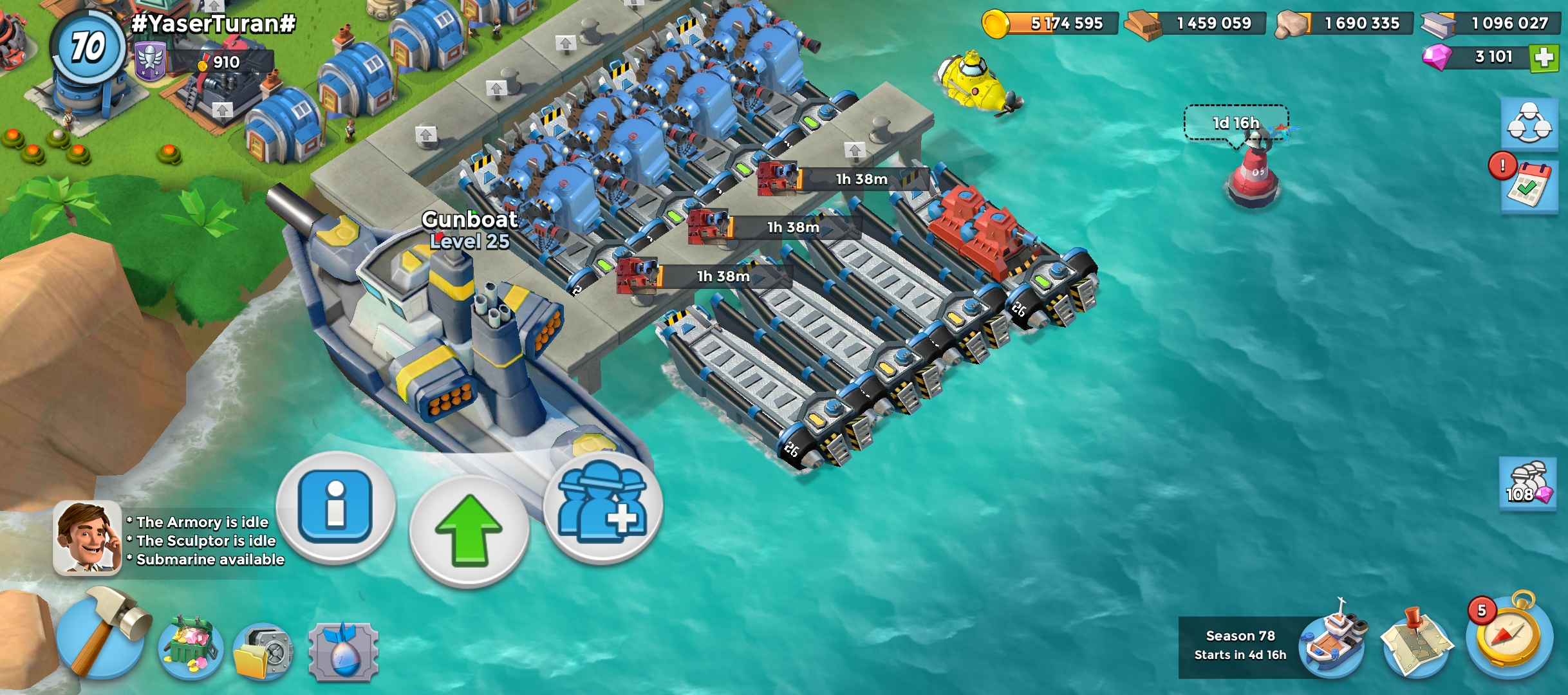 70 level 🏯Headquarters level 26 |🥇 VP 900 | ⛴️ Gunboat 25 | 📡 Radar level 20 | 💎Diamond 3150 | Landing Craft 24 | Power Powder 450 | Submarine Level 10 |
