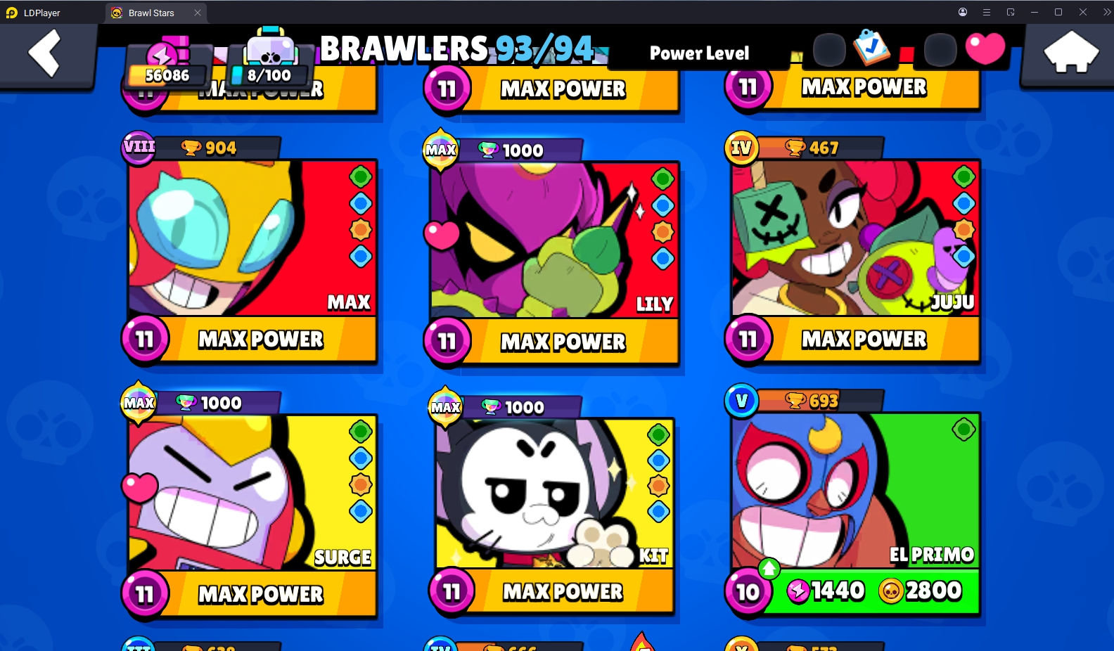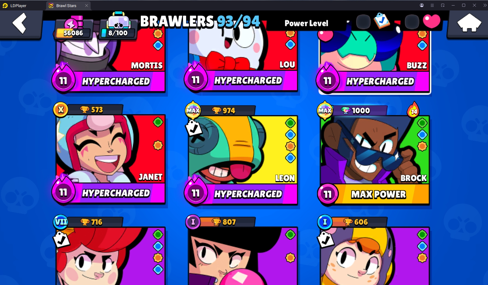 240 SKINS 💯 15 TITLES 🧡 56.086 TROPHIES 🏆 93 BRAWLERS 🐼 17 HYPERCHARGED 🩸 29 MAX BRAWLERS 💛 BORN BAD BUZZ 🧡 CORSAIR COLT 🧡 RUDE LOU 🧡 CURSED KENJI 🧡 RIDER STU 💯