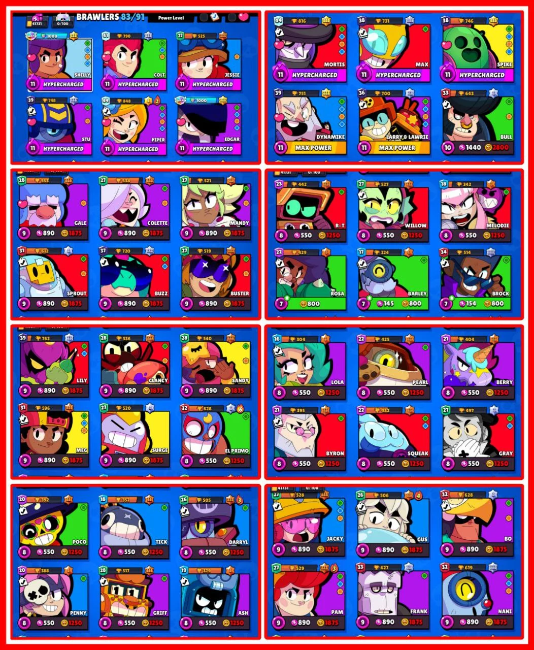 41000+ TROPHIES 🏆 133 SKINS 👑 ✨11 MAX BRAWLER ✨9 HYPERCHARGED BRAWLER ✨60 GEMS NAME CHANGE 💎 INSTANT DELIVERY 🚚