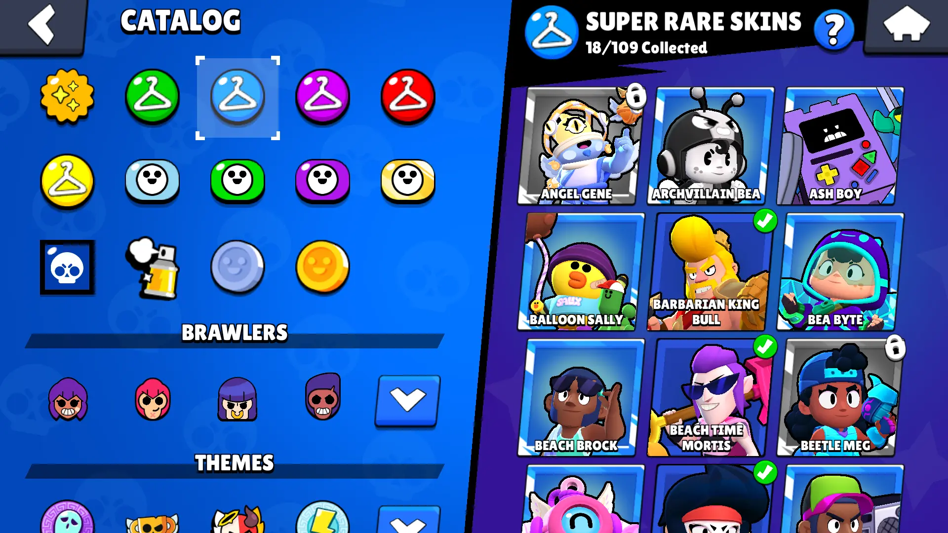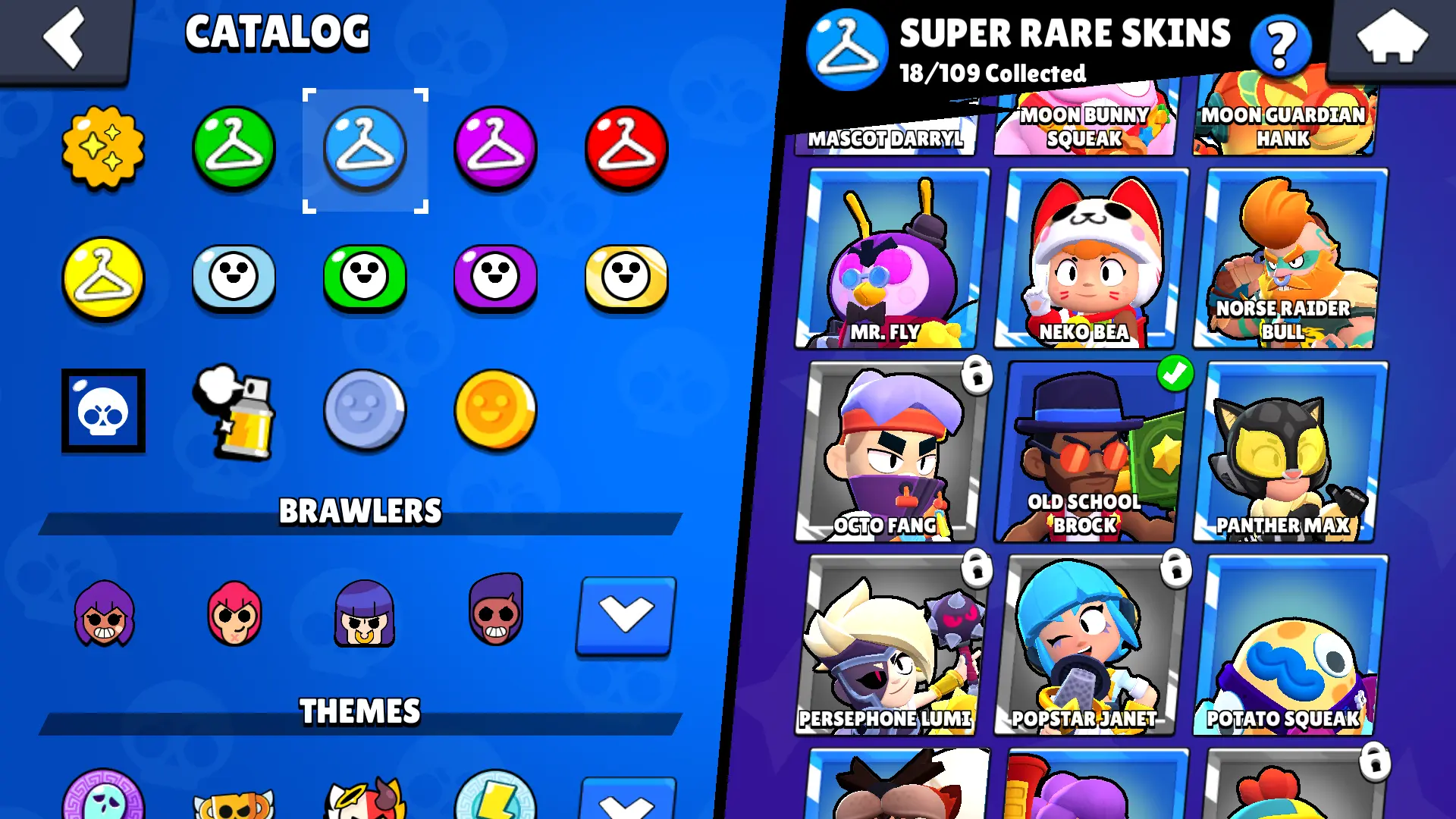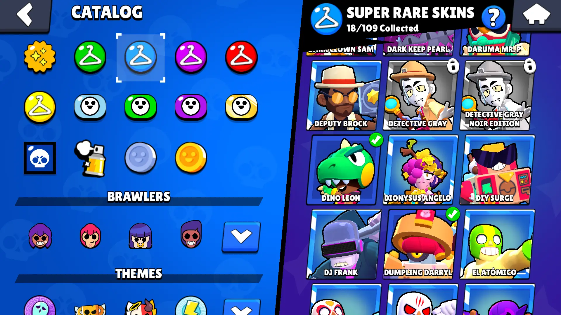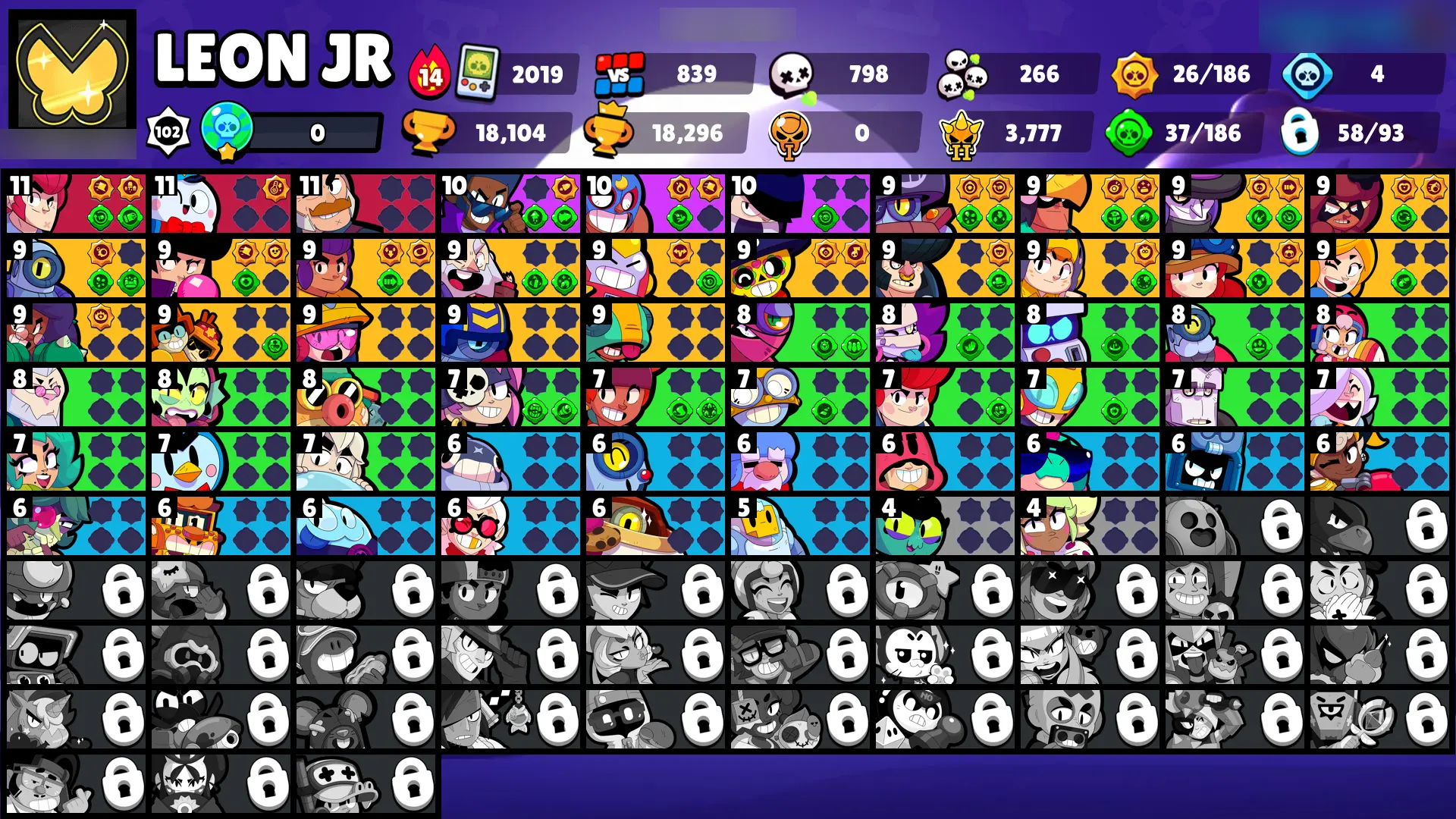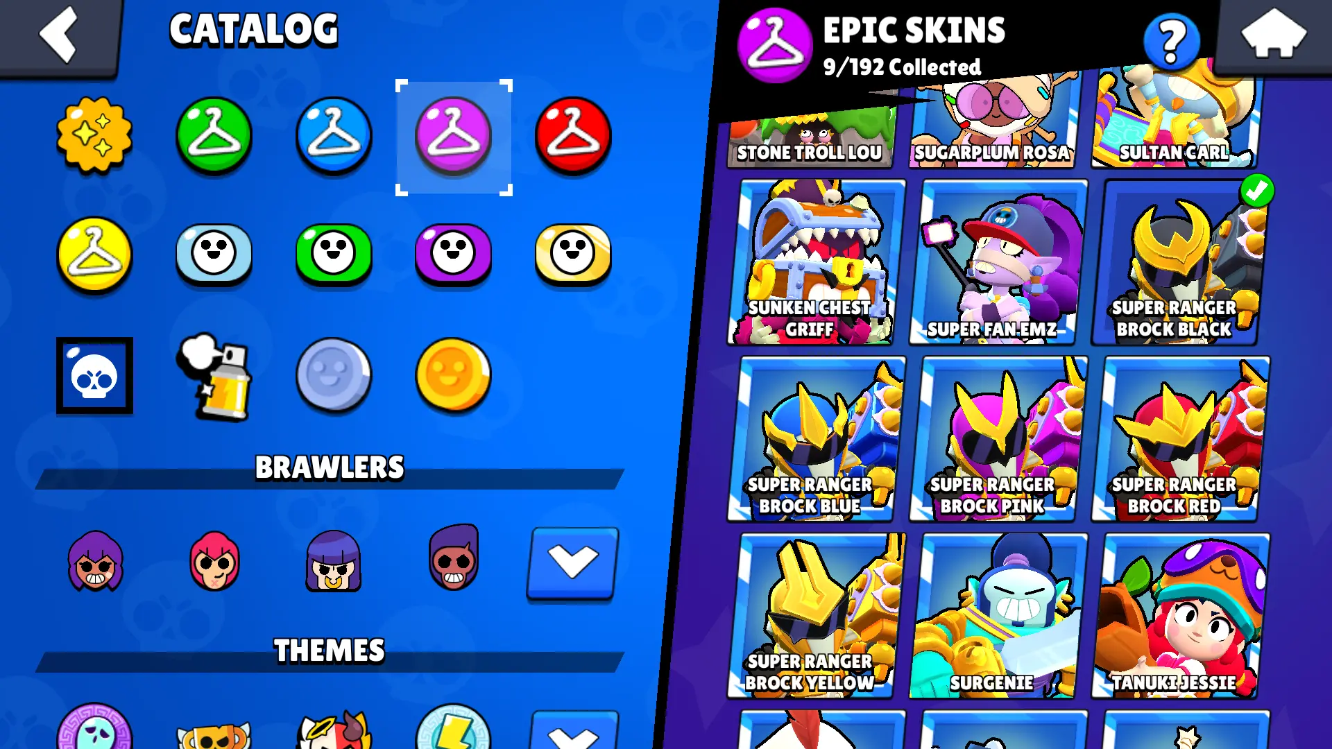 56 SKINS | 18104 TROPHIES | SUPER RANGER BROCK BLACK | WARRIOR BO | MARIPOSA PIPER | TECH MAISIE | SQUAD BUSTER SHELLY | DYNASTY MIKE | ZOMBROCK | GUARD RICO | DUMPLING DARRYL | MOTHRA EVE | BEACH TIME MORTIS | DINO LEON | DARUMA MR. P | 58 BRAWLERS