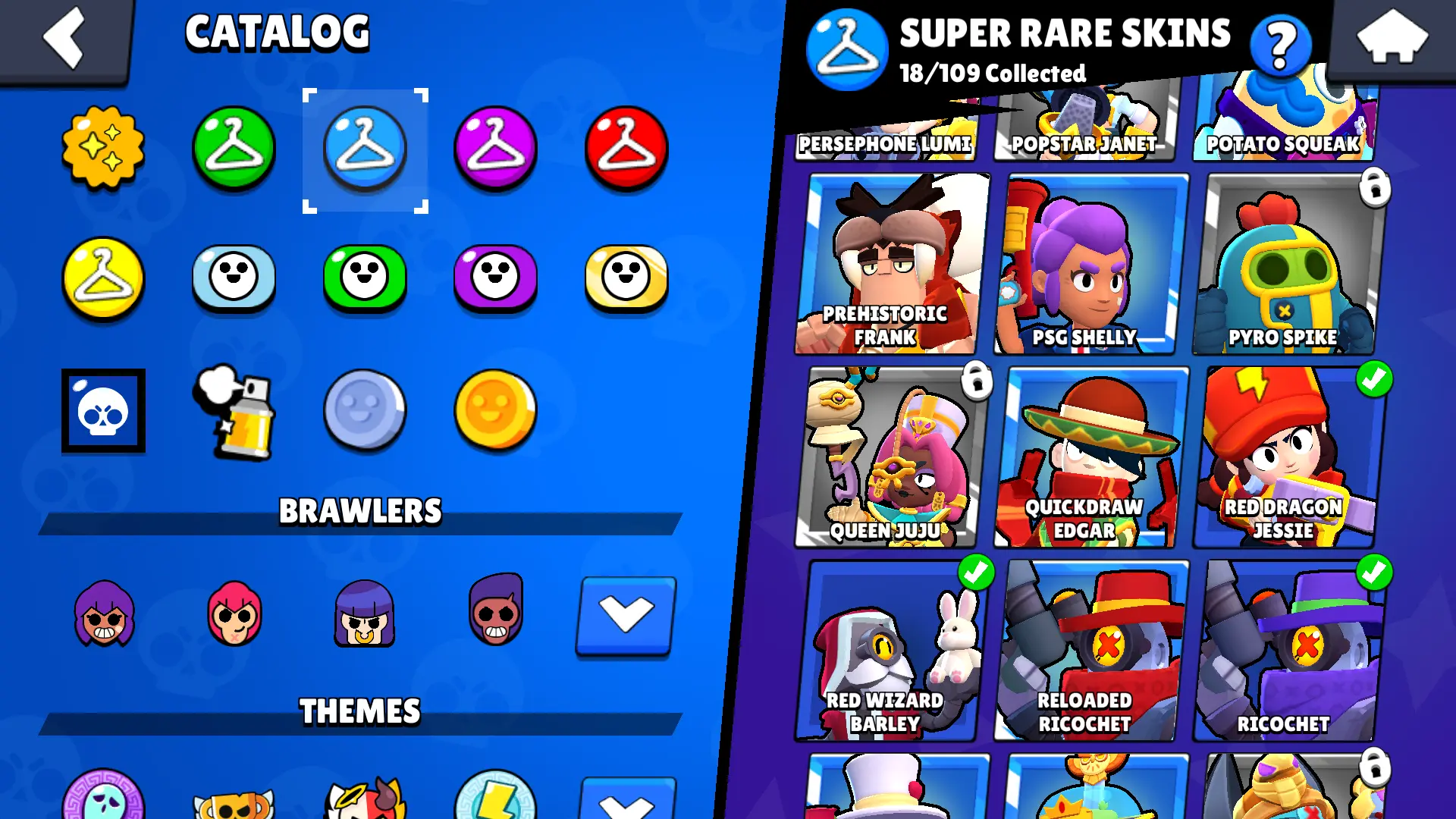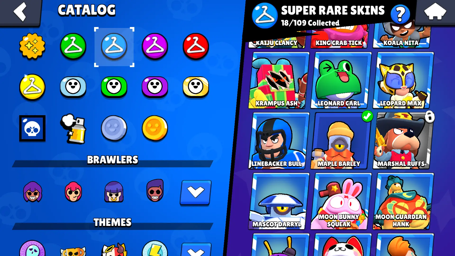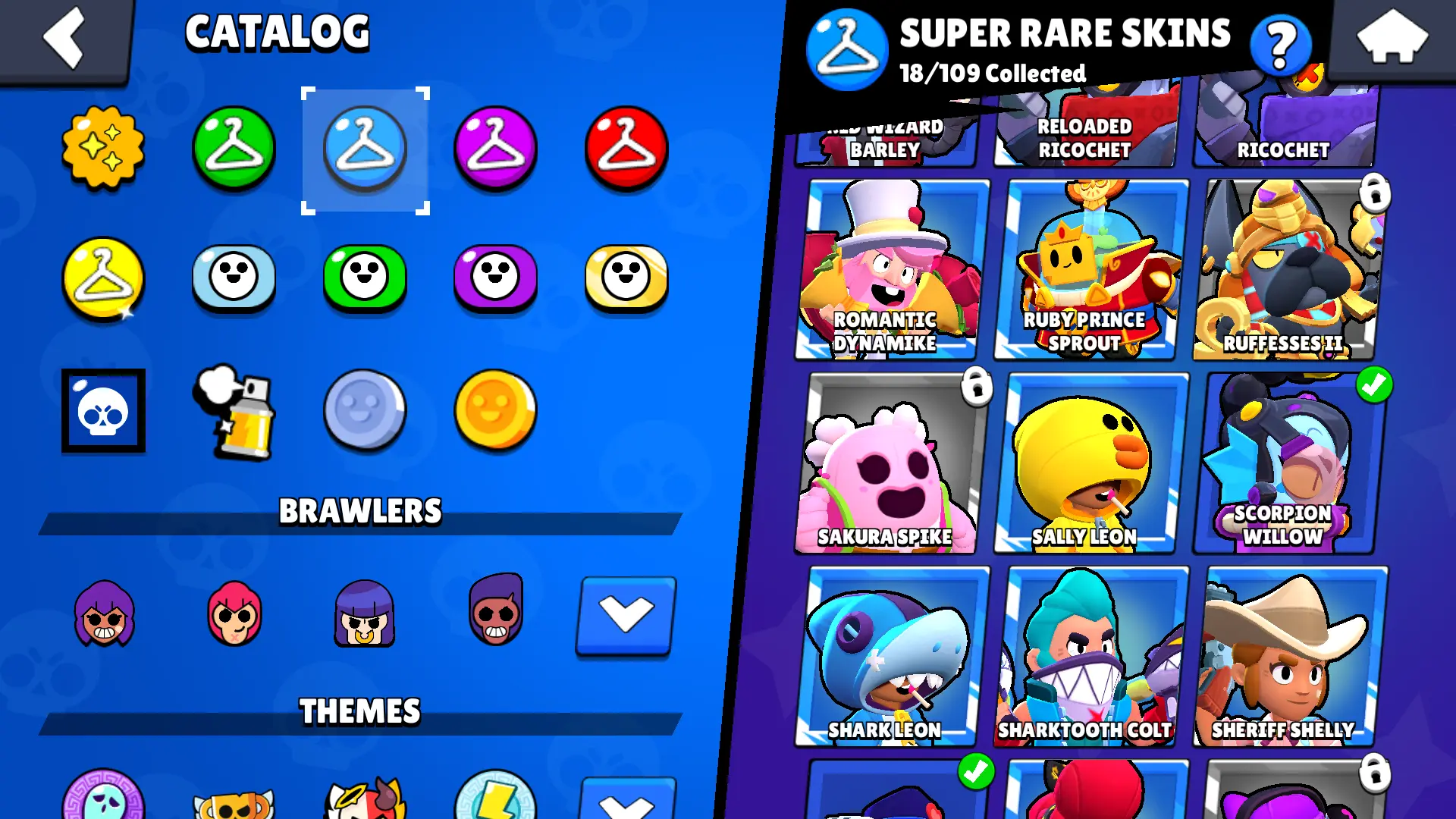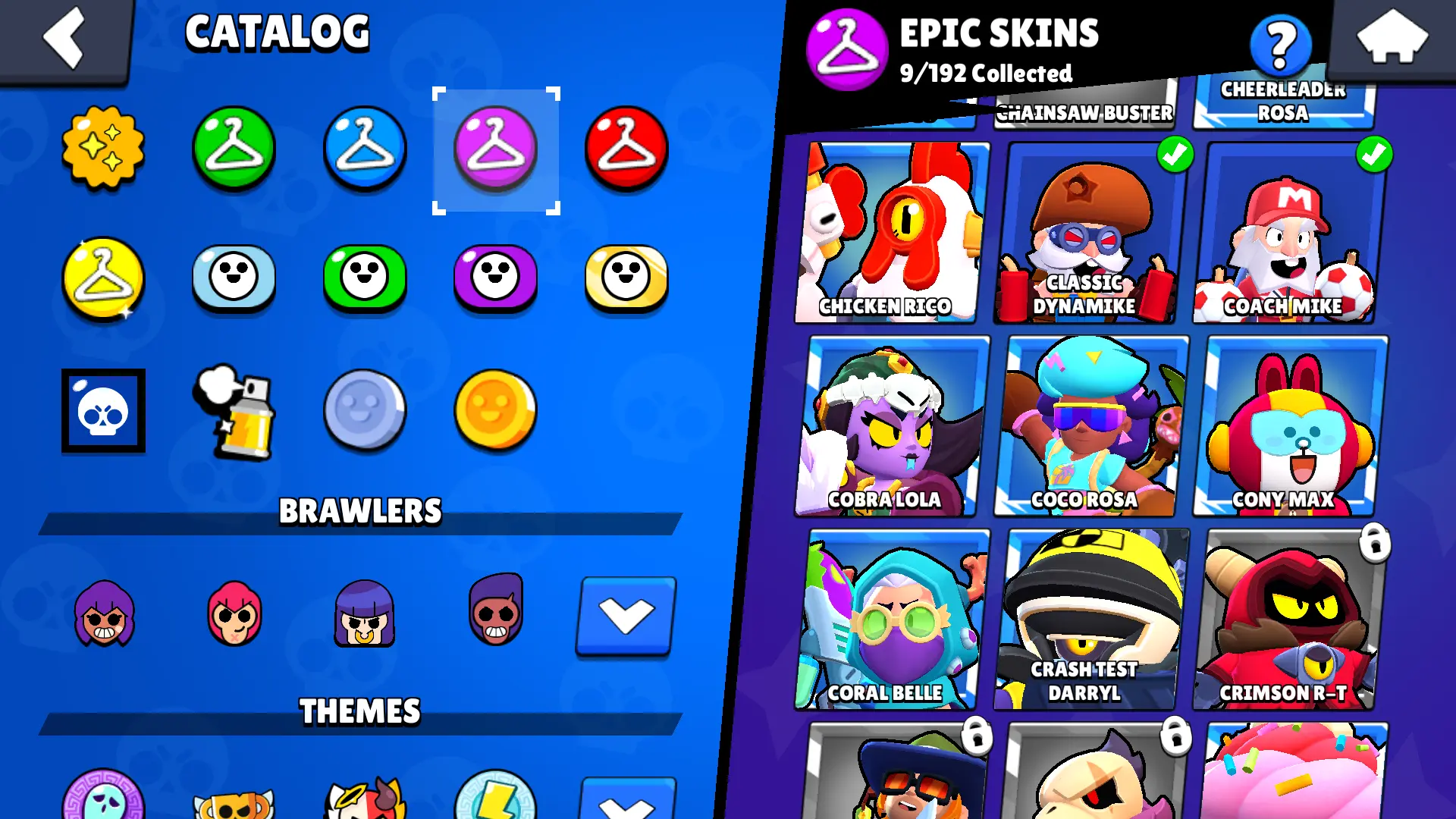 56 SKINS | 18104 TROPHIES | SUPER RANGER BROCK BLACK | WARRIOR BO | MARIPOSA PIPER | TECH MAISIE | SQUAD BUSTER SHELLY | DYNASTY MIKE | ZOMBROCK | GUARD RICO | DUMPLING DARRYL | MOTHRA EVE | BEACH TIME MORTIS | DINO LEON | DARUMA MR. P | 58 BRAWLERS