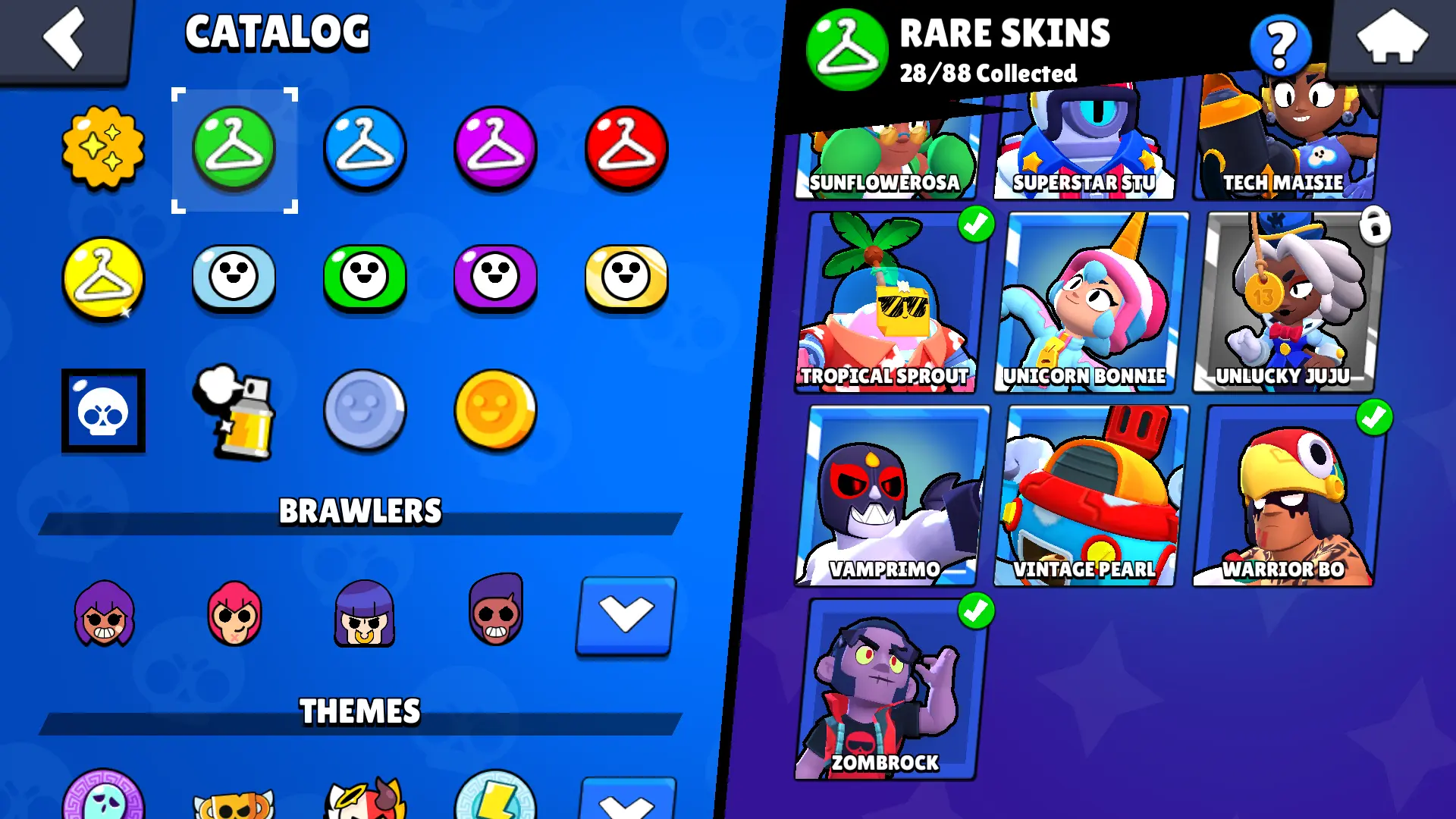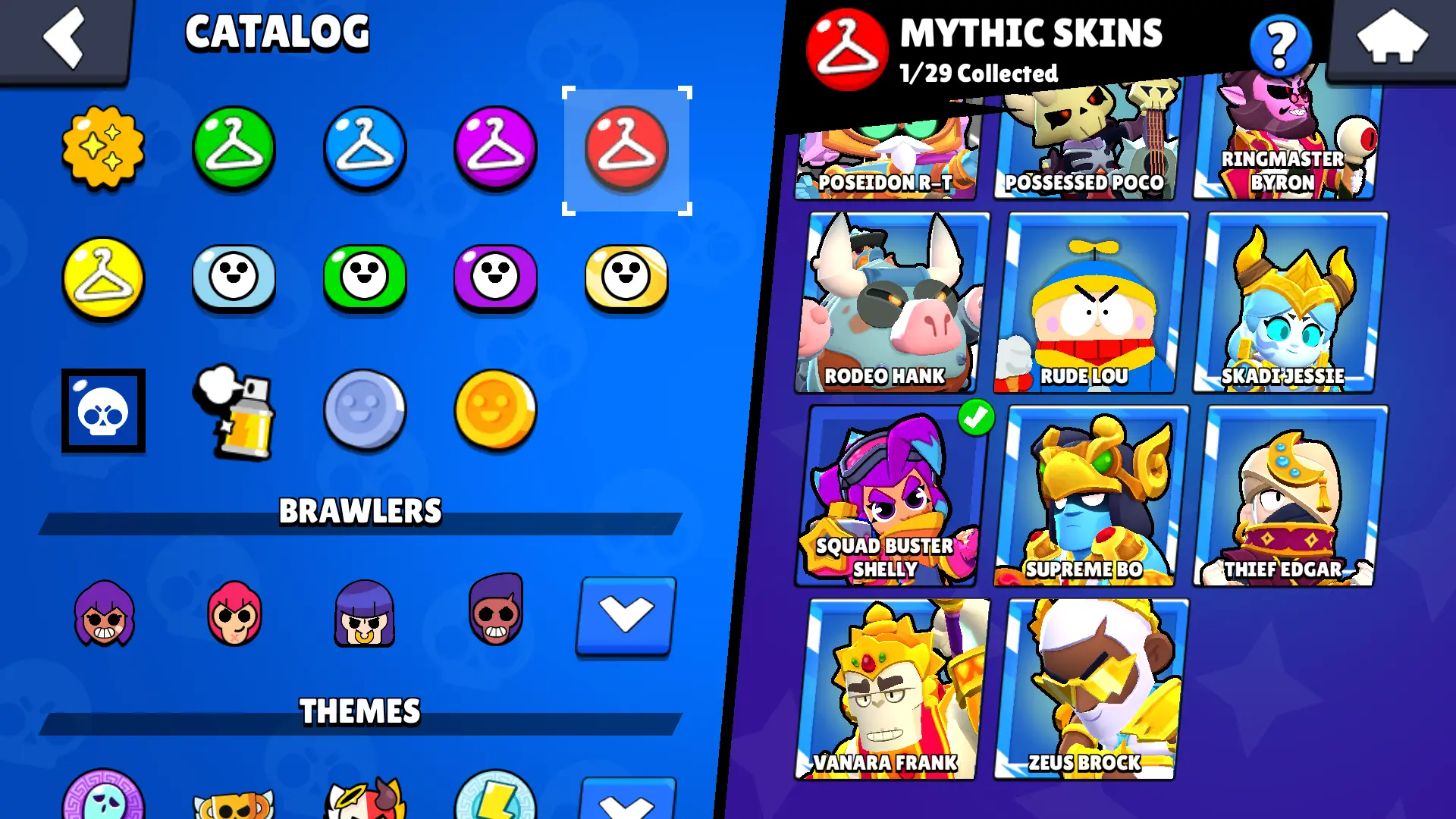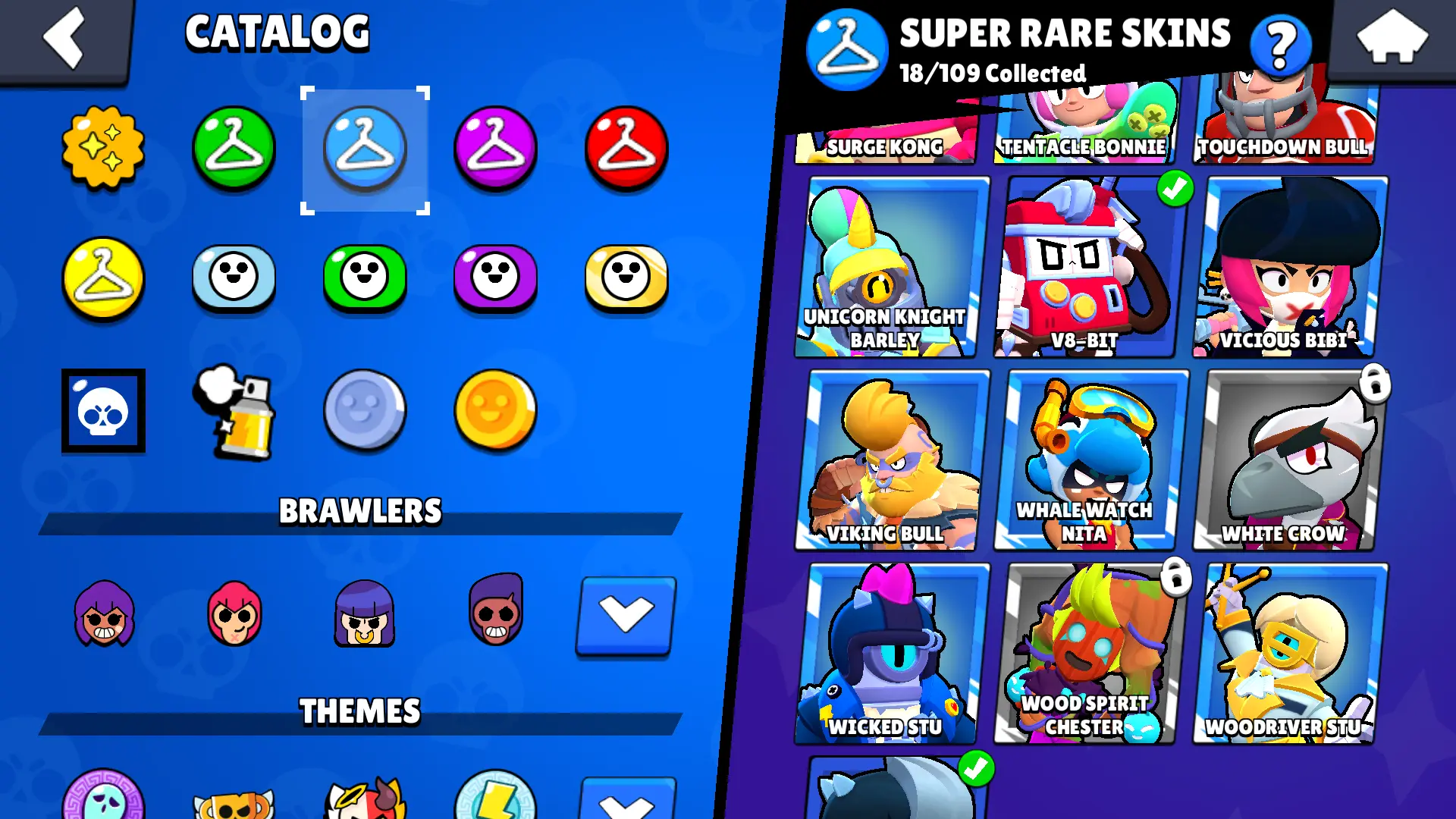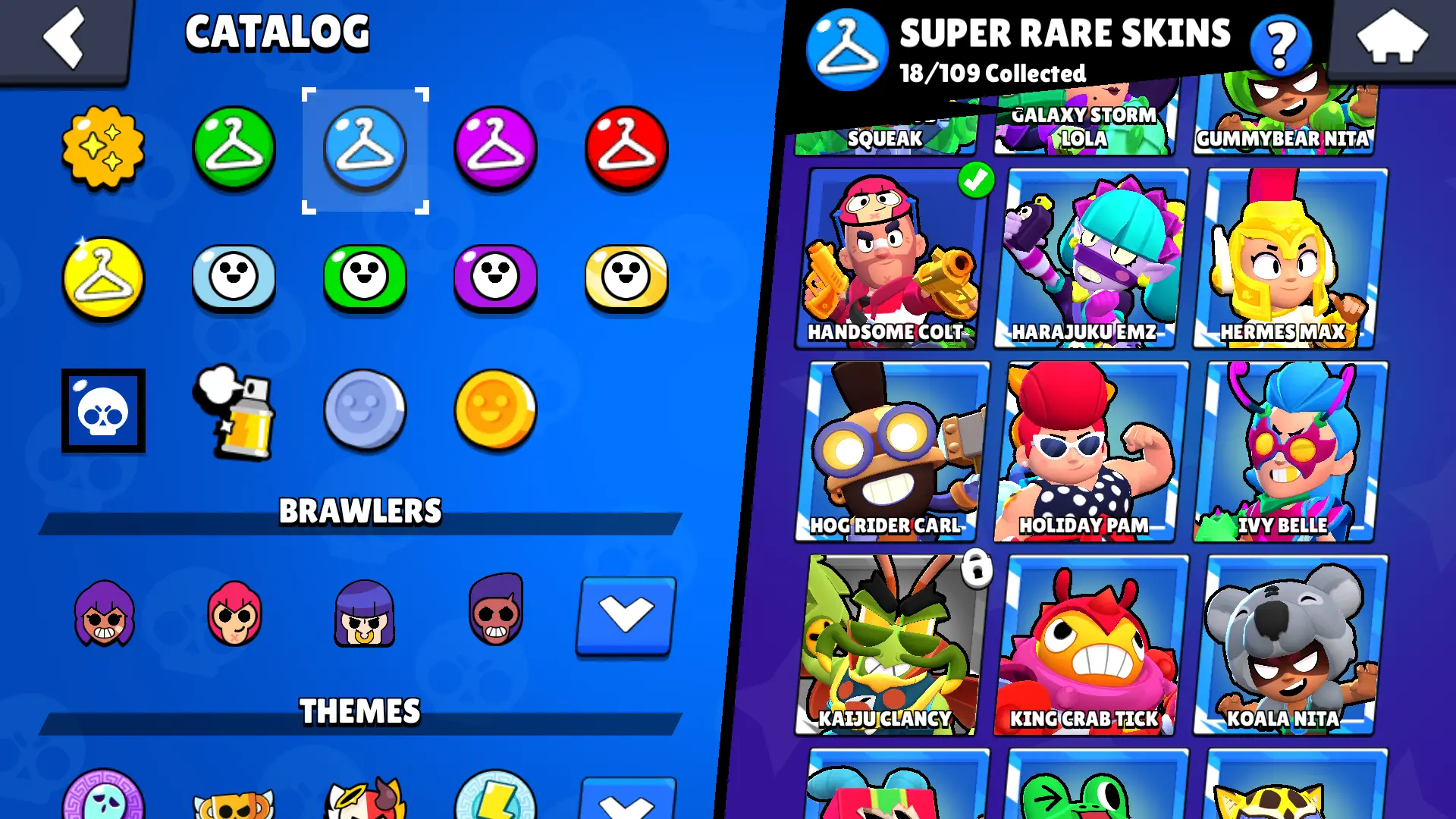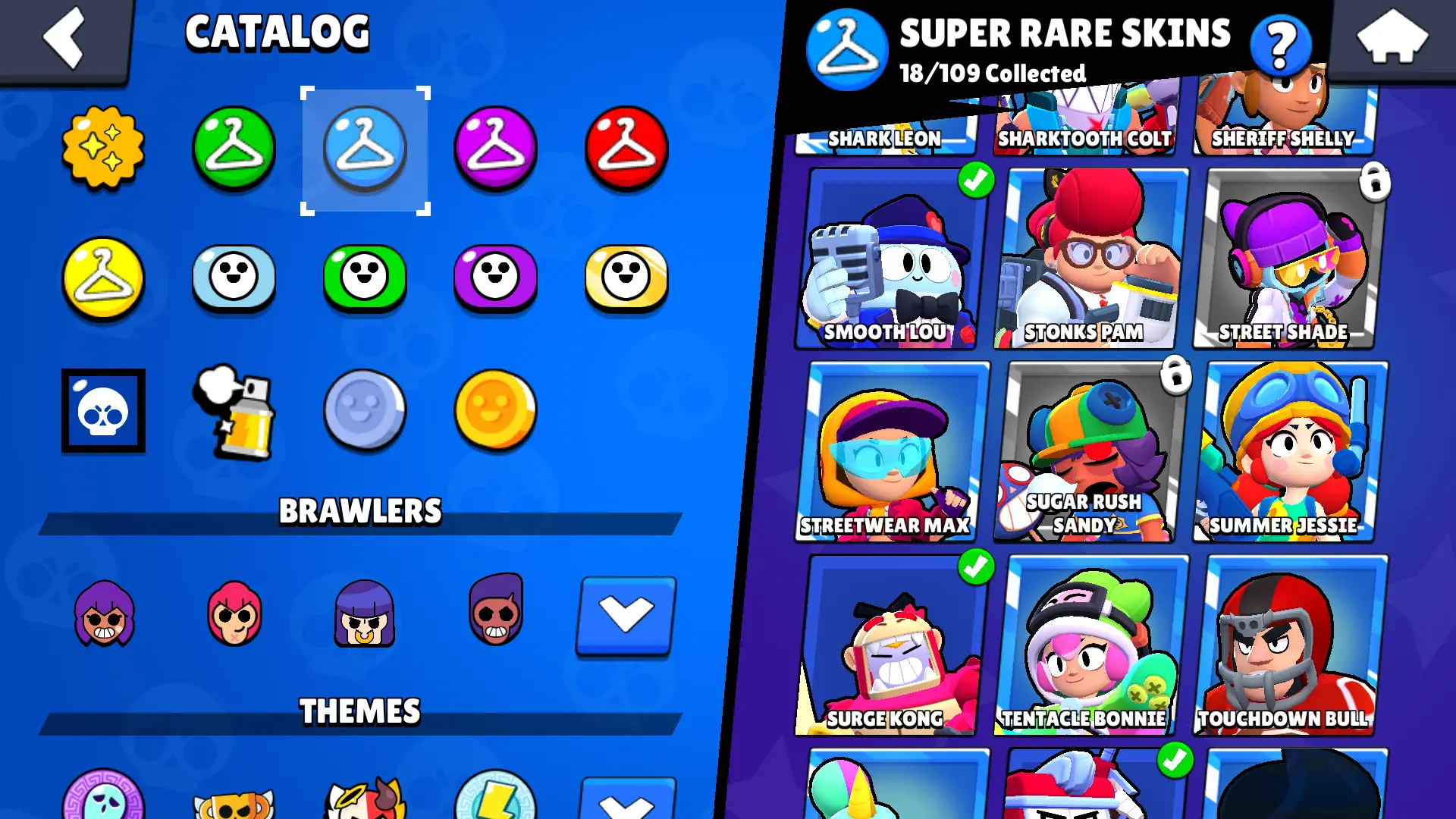 56 SKINS | 18104 TROPHIES | SUPER RANGER BROCK BLACK | WARRIOR BO | MARIPOSA PIPER | TECH MAISIE | SQUAD BUSTER SHELLY | DYNASTY MIKE | ZOMBROCK | GUARD RICO | DUMPLING DARRYL | MOTHRA EVE | BEACH TIME MORTIS | DINO LEON | DARUMA MR. P | 58 BRAWLERS