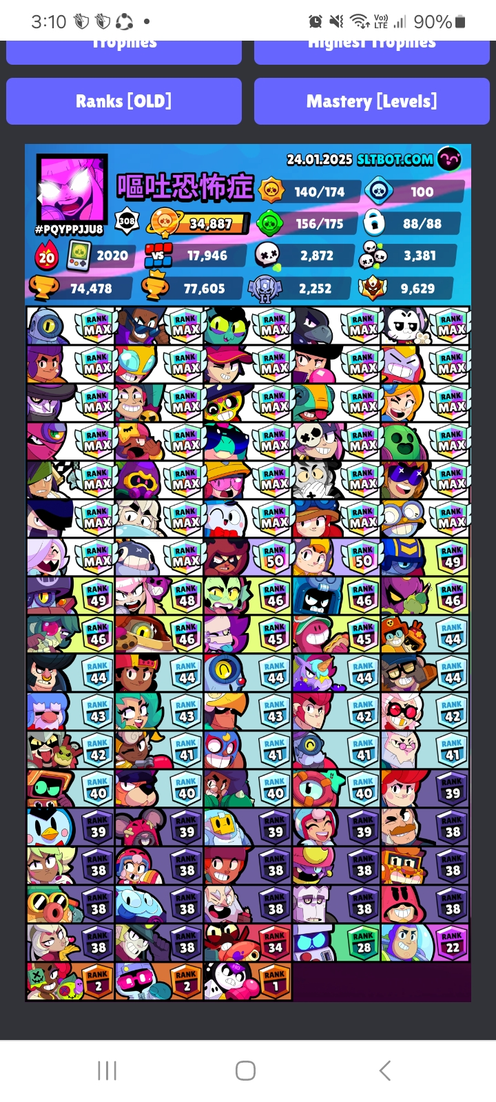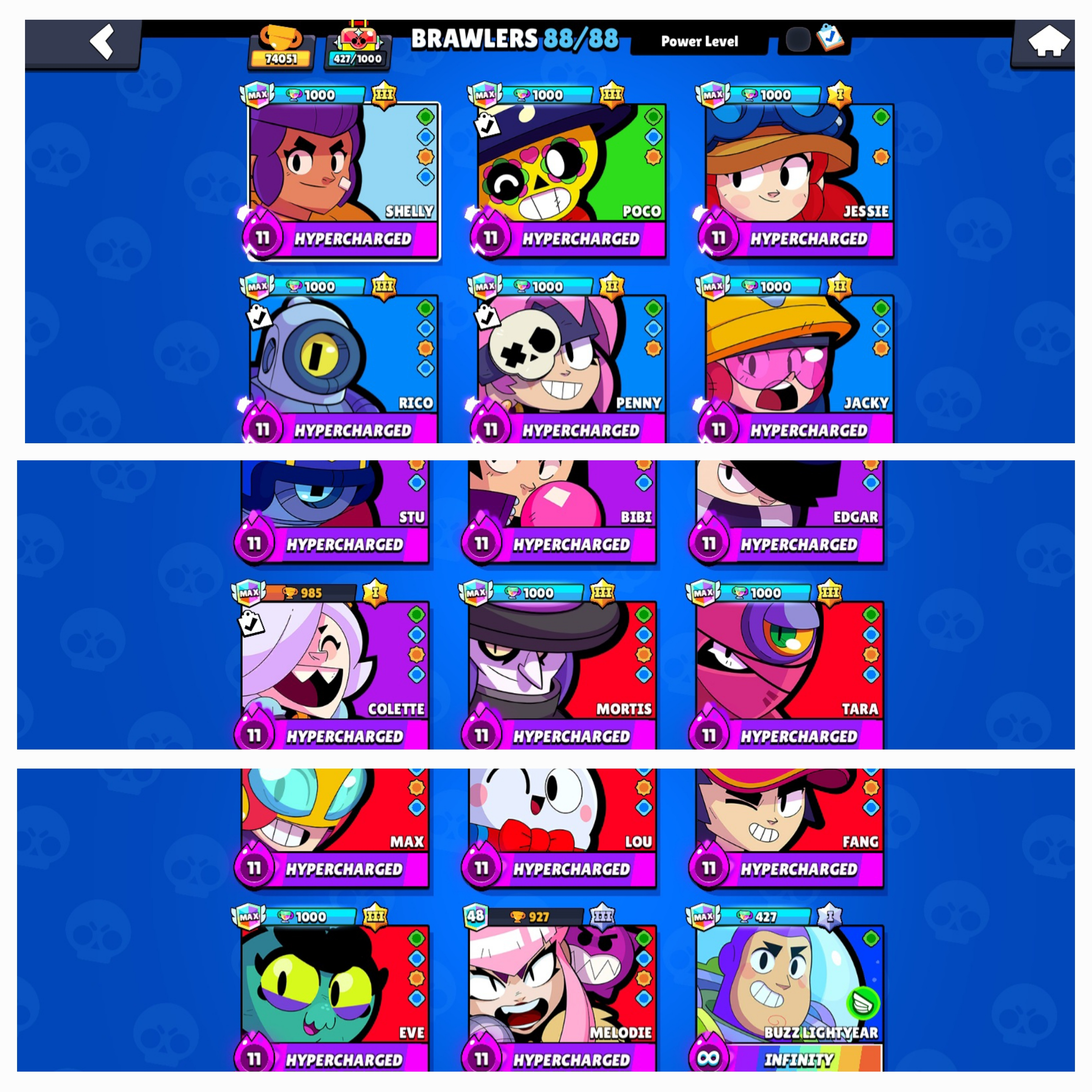 74k Trophy 💥 185 Premium Skins 🌟 35 Brawlers Rank Max 🔥 28 Max Brawlers [ 23 HYPERCHARGED & 1 Infinity ]⚡ 88/88 Brawlers 💫 ANDRIOD / IOS