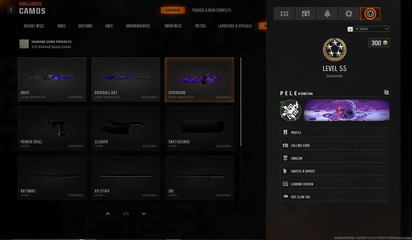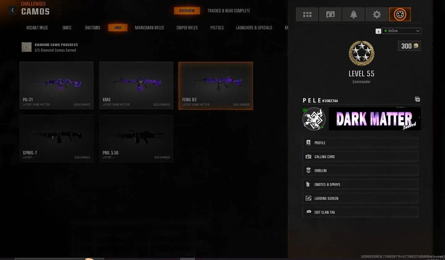 ✳️ Cheapest ✳️ BO6 / Warzone ✳️ 33x Dark Matter Camo on META GUNS ✳️ 33x ( Dark Spine , Diamond , Gold ) ✳️ 495 Camos ✳️ Ranked Ready ✳️ Level 55 ✳️ 50 Wins ✳️ Steam , Battle Net , PSN , XBOX #rRk3uT