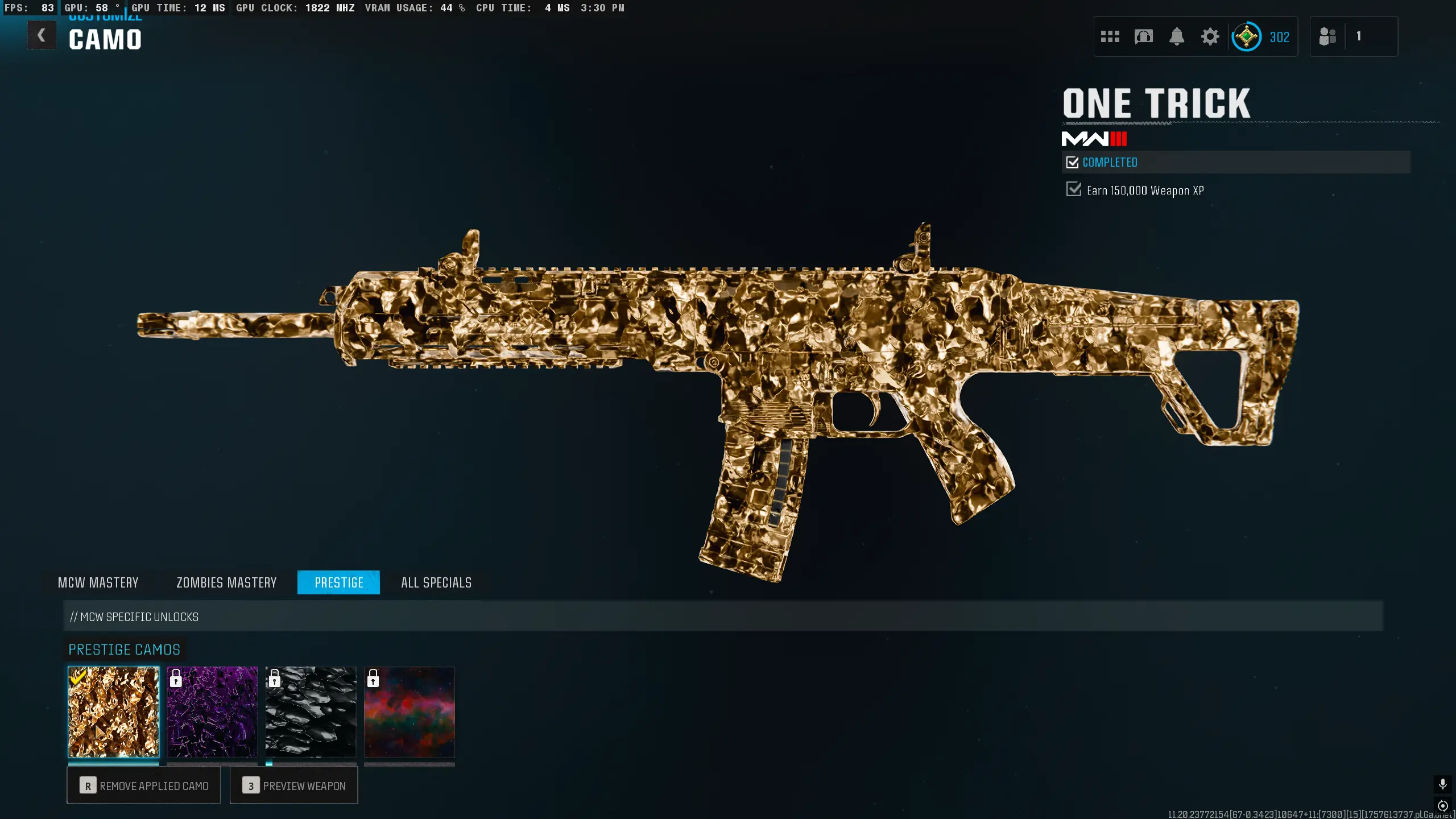👑 MW 1 ⸱ MW2 ⸱ MW3 ⸱ WZ4 Mastery Camos Unlocked ✨ Abyss ⸱ Interstellar ⸱ Orion & Damascus Camo Unlocked 💪 Prestige Master 360+ Level ✨Over 318 Total Operator Skins ✨ Over 1500 Camos Unlocked ✨ Og Account ✨ Fastest Delivery ✨ Linkable to All Platforms
