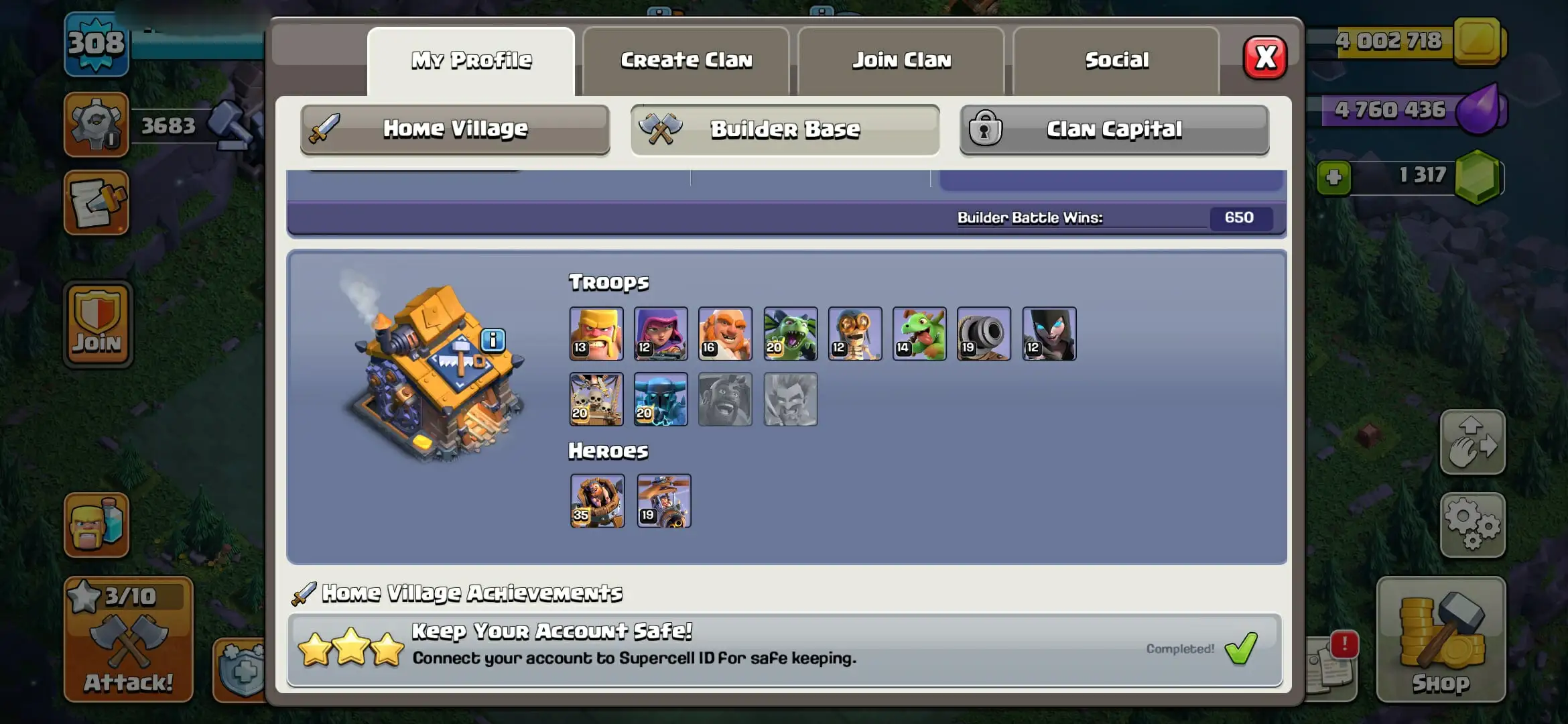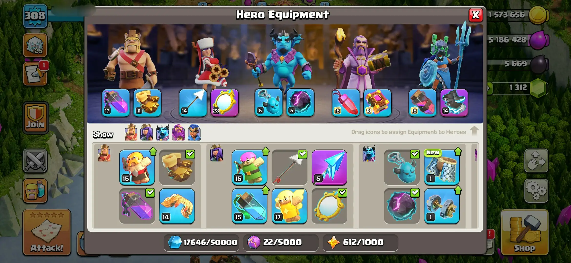 308 XP 👑 Top Rare Account 🌟 TH 17 Best Account 🌟🌹 High Heroes ⸱ 95/95/72/71/45🌟🌹 15x Good Heroes skins 🌟 Instant Delivery
