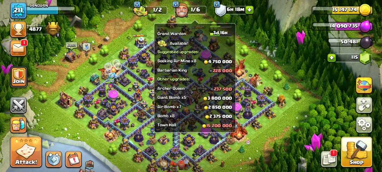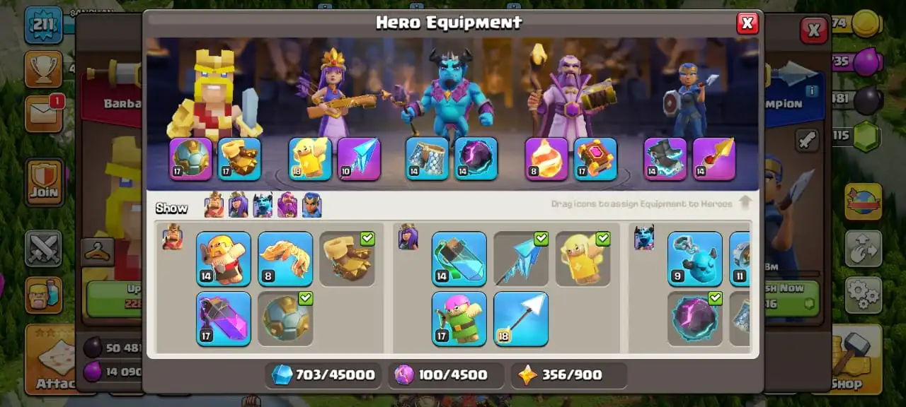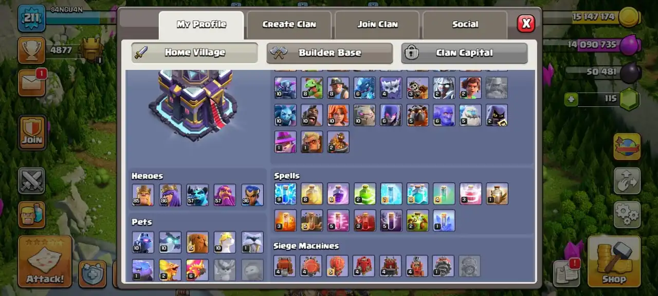 Big saleđ„TH 15 max defenseđ„high heroes level 85/86/57/57/36â ïž5 epic equipmentâïž6 builderâsâïž516 cwl medalđ„max walls