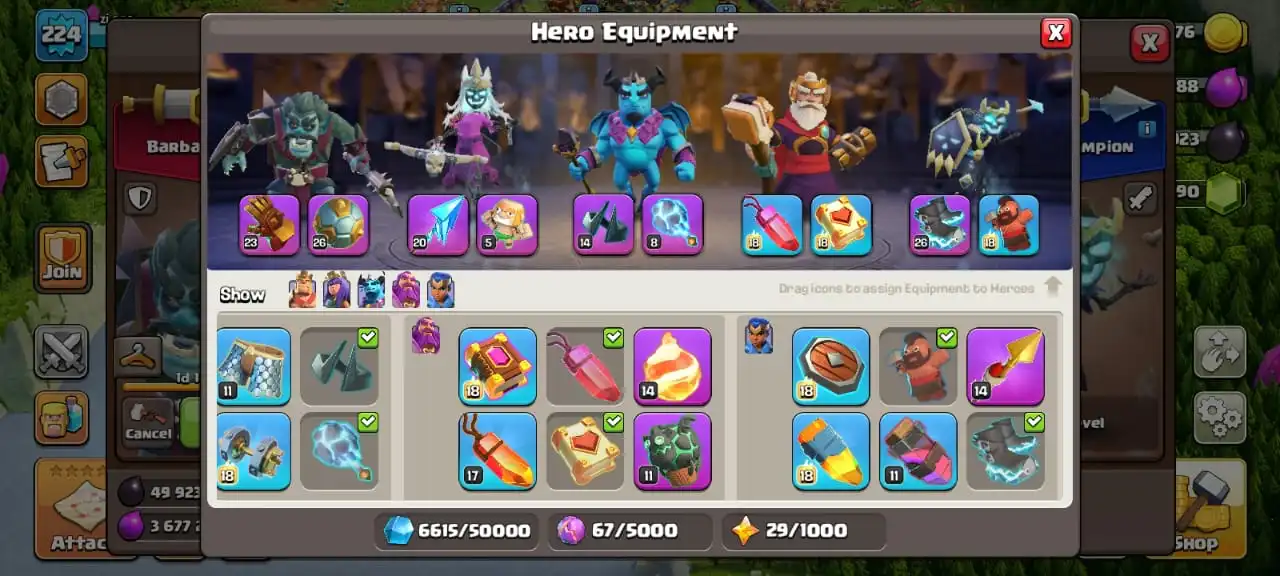 TH 17 almost maxđ„heroes level 66/71/77/60/50â ïž11 epic equipmentâïž6 builderâsâ