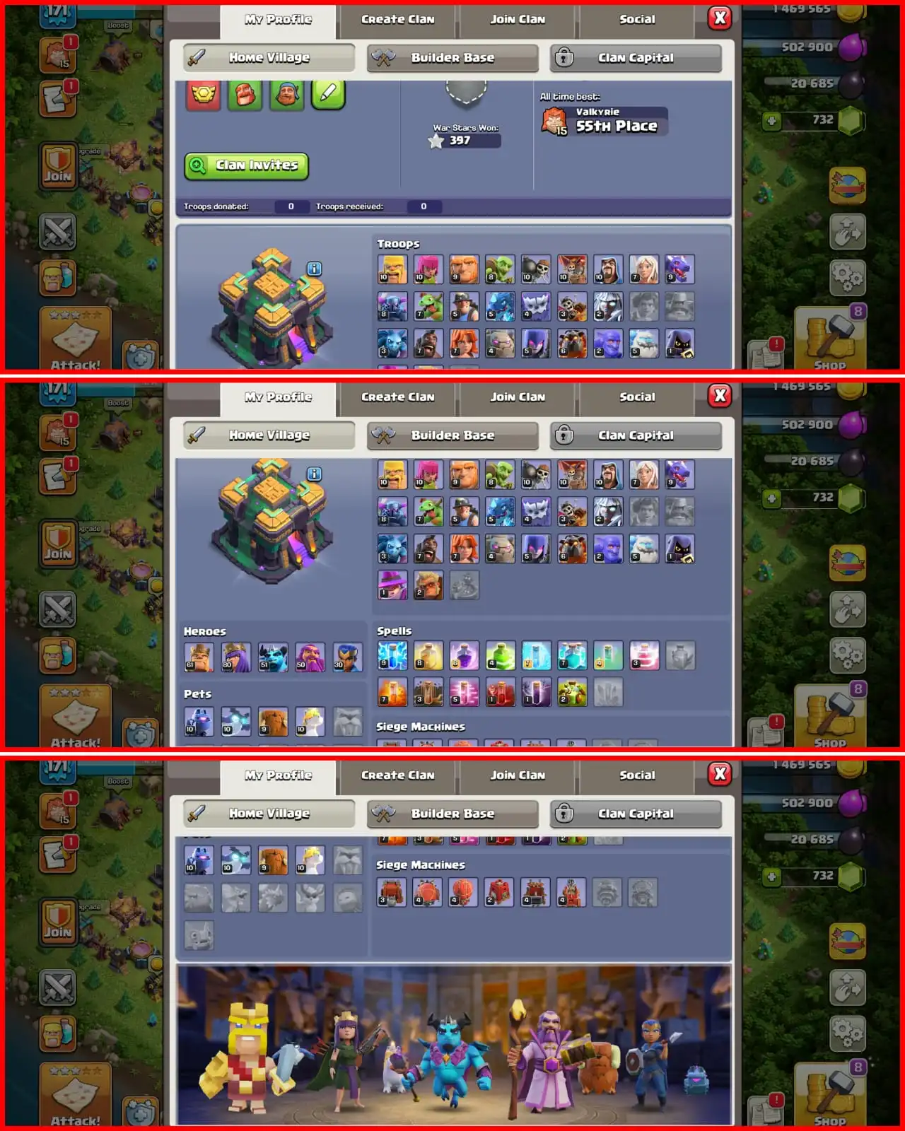 Full max Th 14 | Heros Max | All Walls Max | All Dfnc Max | All Pets max | 467 Medels | Profile Max | Magic Items loaded | Builder Base Max | Cheap price |
