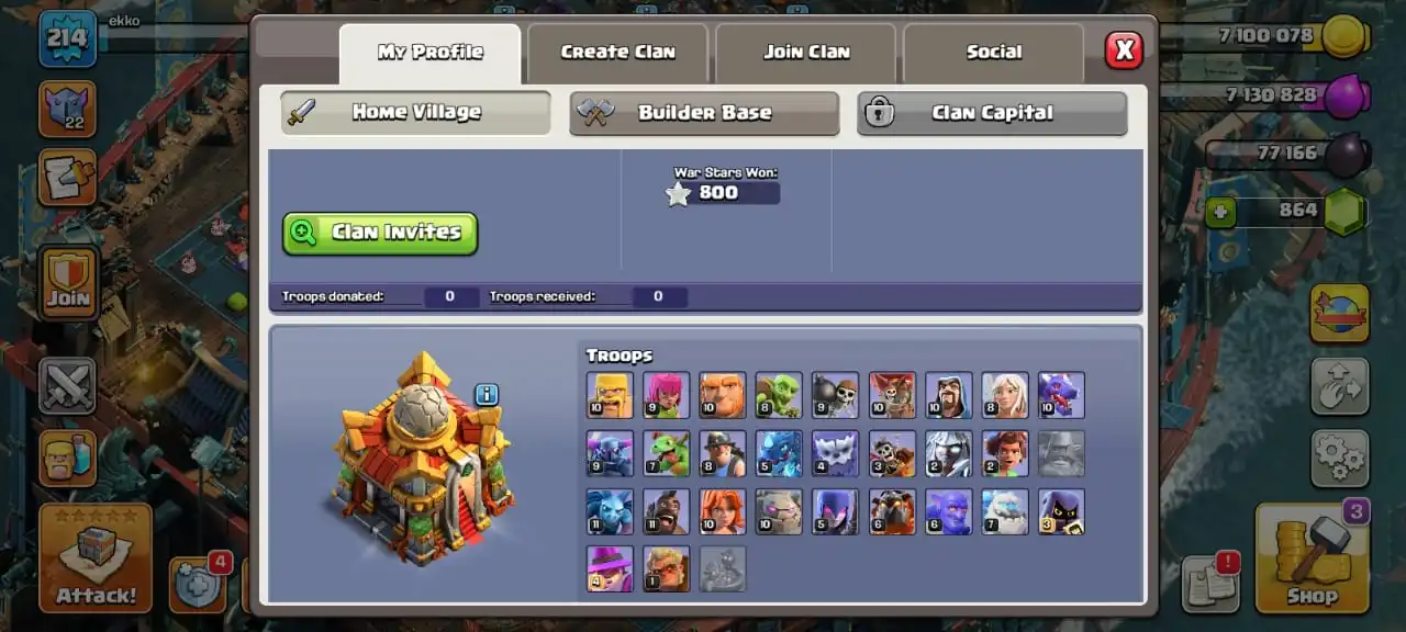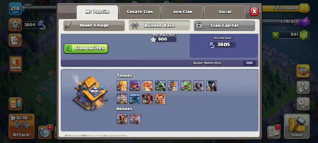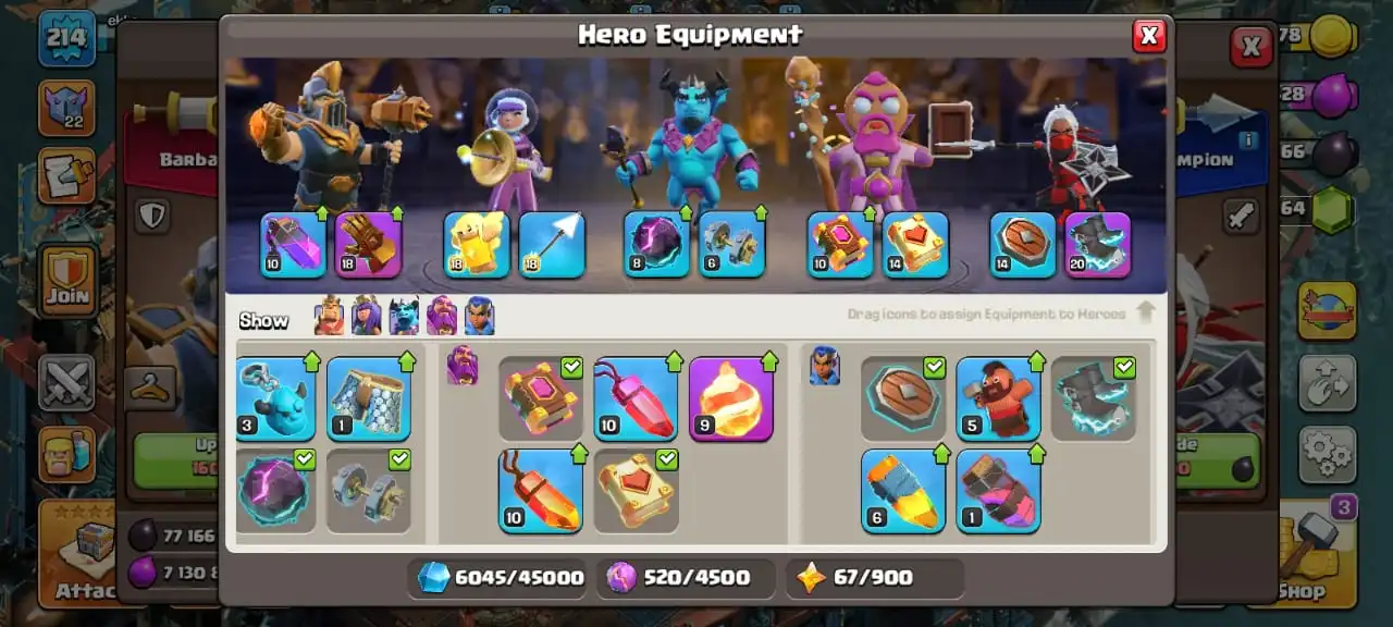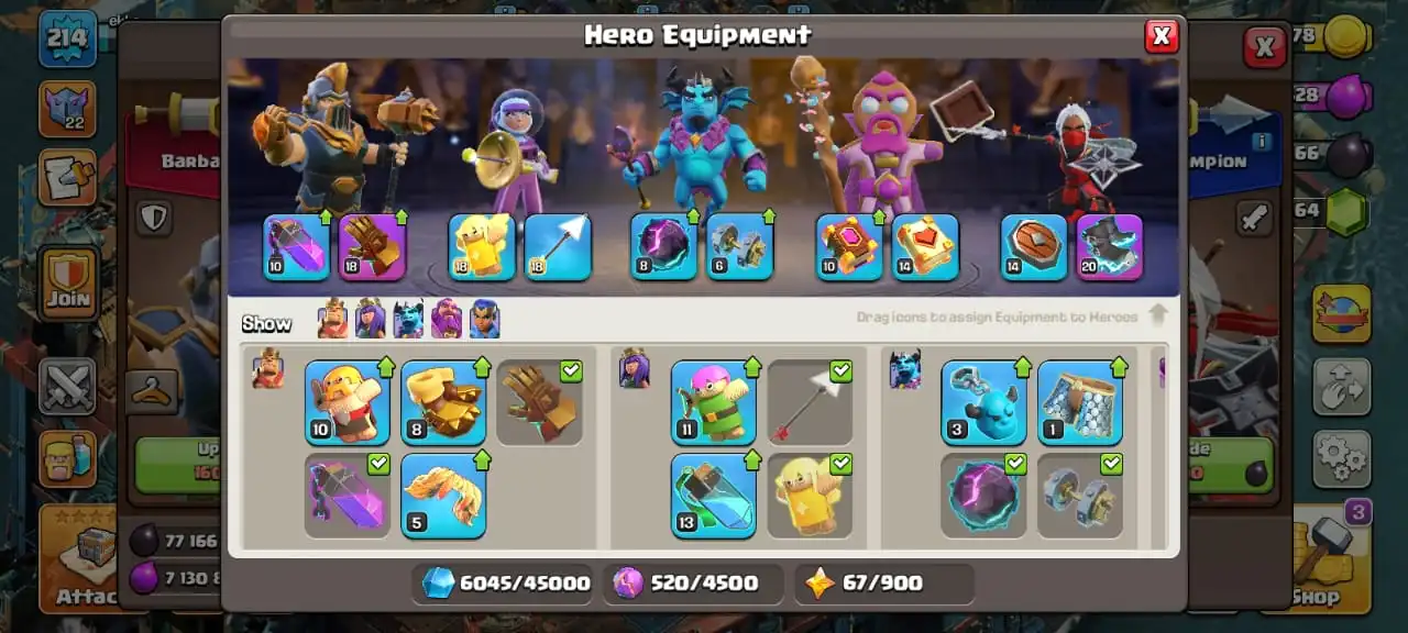 TH 16 ready to warđ„heroes level 76/81/53/53/32â ïž3 epic equipmentâïž6 builderâsâ