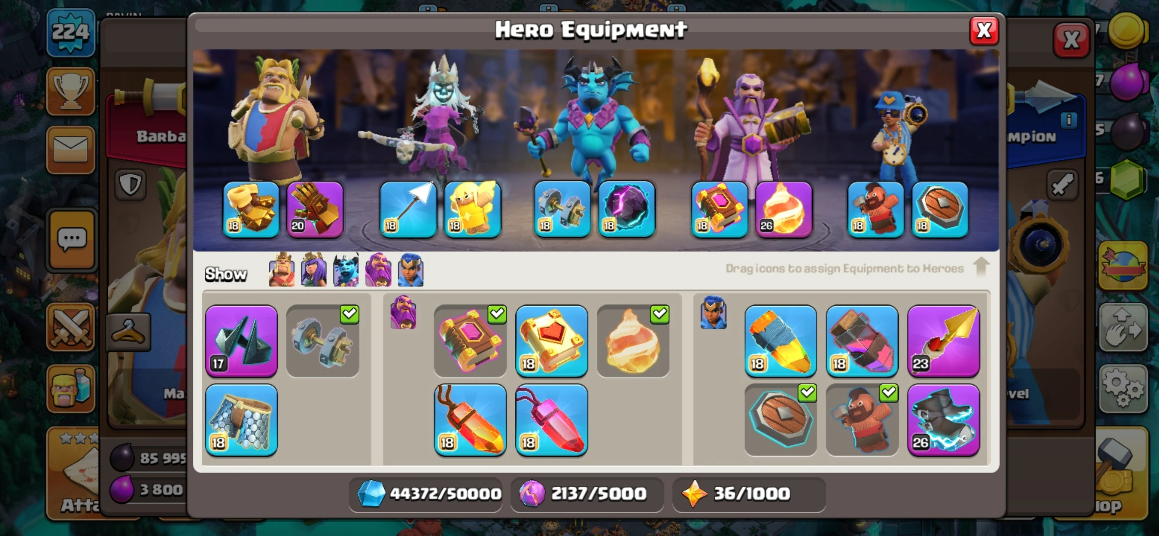 [NC FREE]TH17 MAX XP224 | 5 HERO MAX 100 100 90 75 50 | 27 EQUIPMENTS EPIC | MAGIC ITEMS FULL | 4 SKIN HERO RARE | BH10 BM BC MAX⚡FAST DELIVERY