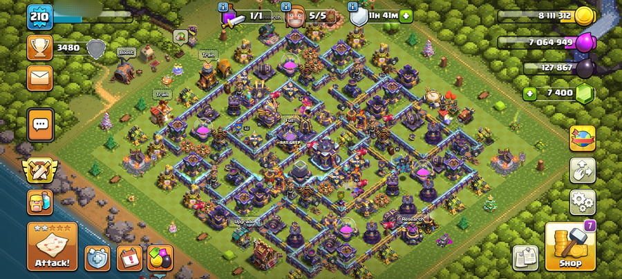 NEAR MAX TH17 ⭐️ 38 HEROES SKINS 🌊 ALMOST MAXED HEROES [95-100-73-72-45] 💥 10 EPIC EQUIPMENTS 💫 VERY GOOD DEFENCE & LAB ⚡️ {255 EXP} ☠️ BUILDER HALL 10 MAXED OUT 🔥 NAME CHANGE 1k GEMS