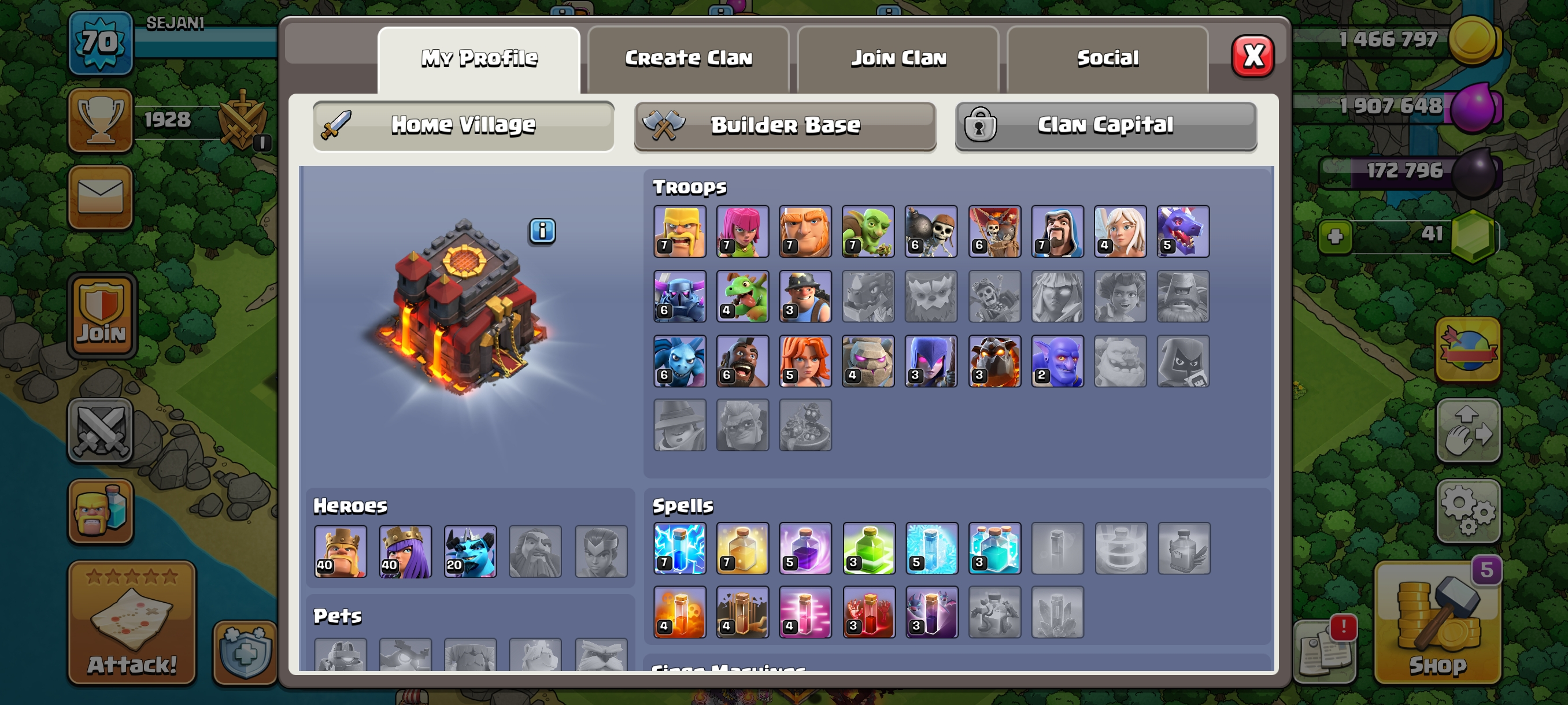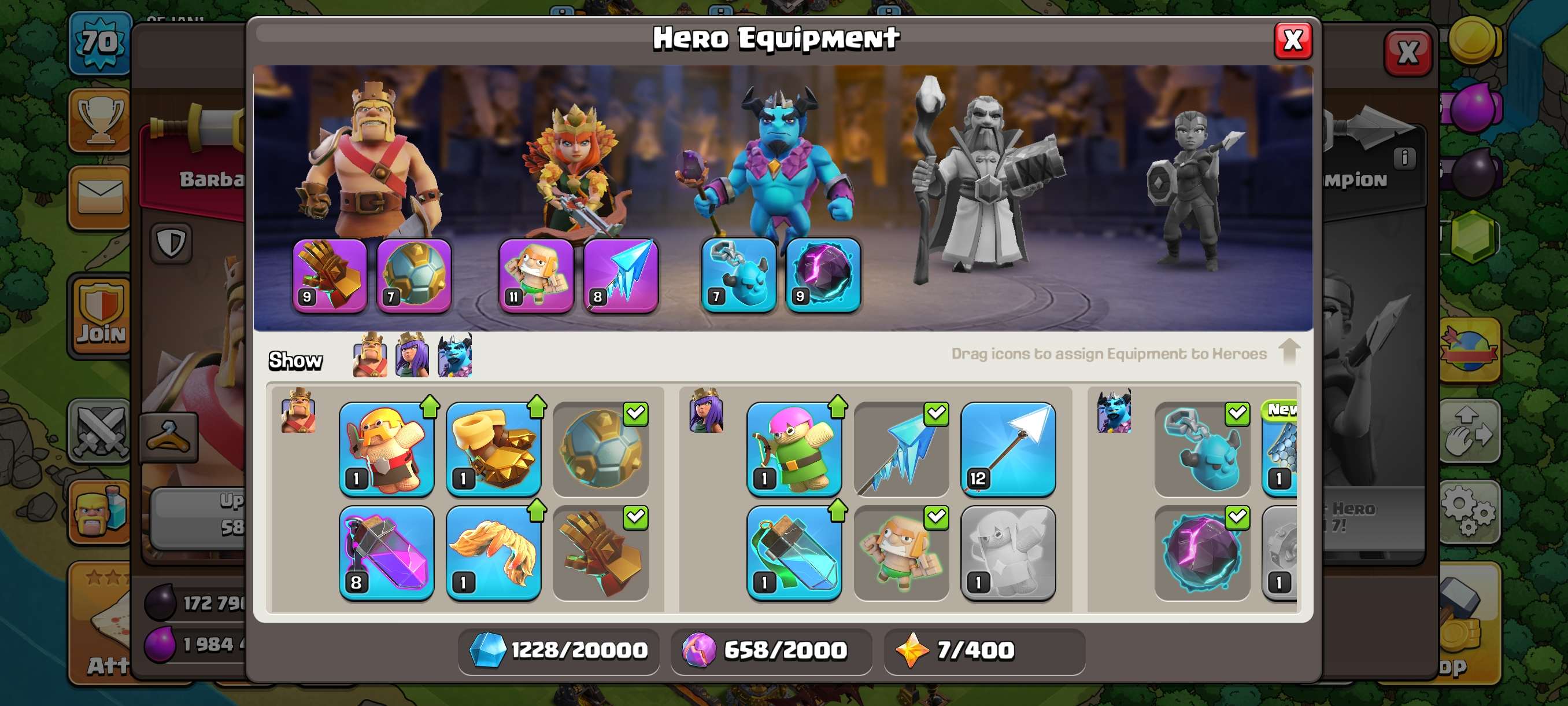 Rare 4X Epics GG-SB-FA-AF Max--Th10 Full Max--Xp70--Hero 40-40-20--5 Builder--2X Hero Skin--Nc 500