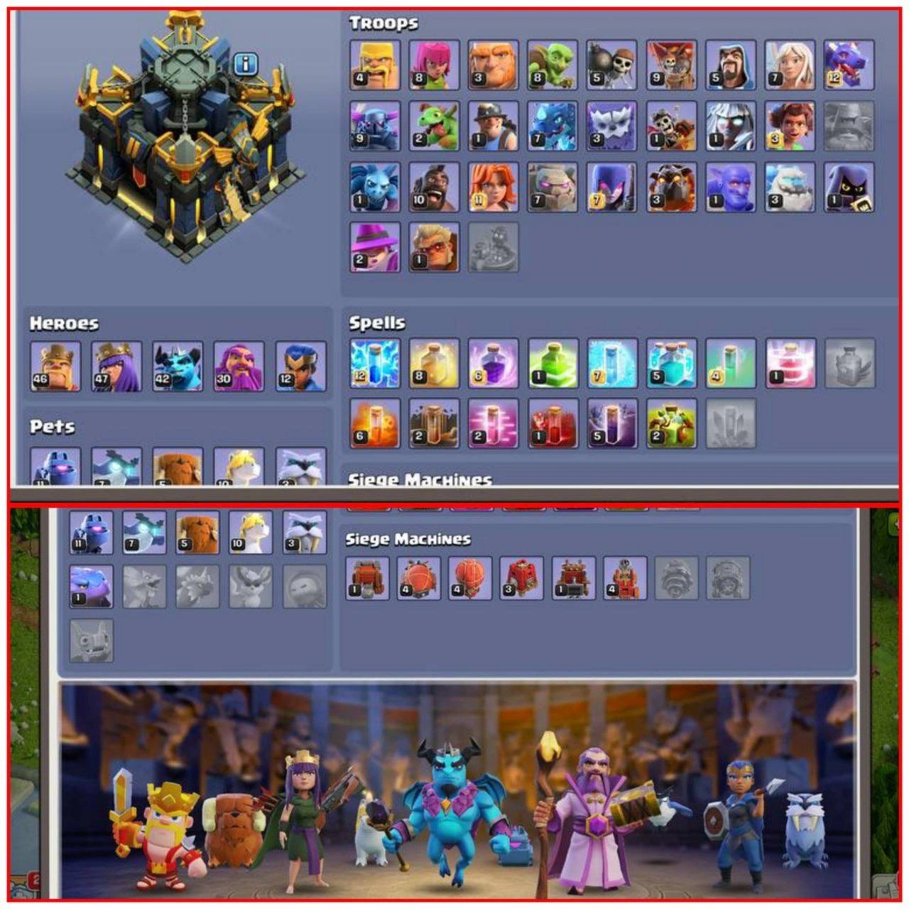 SEMI MAX TH17 🔥 ALMOST MAX DEFENCE 💥 7 EPIC EQUIPMENTS ⭐️ DECENT TROOP & HEROES LEVEL ☠️ ATB: 5420 ⚡️ {168 EXP} 💫 BH LVL 10 👾 NAME CHANGE FREE