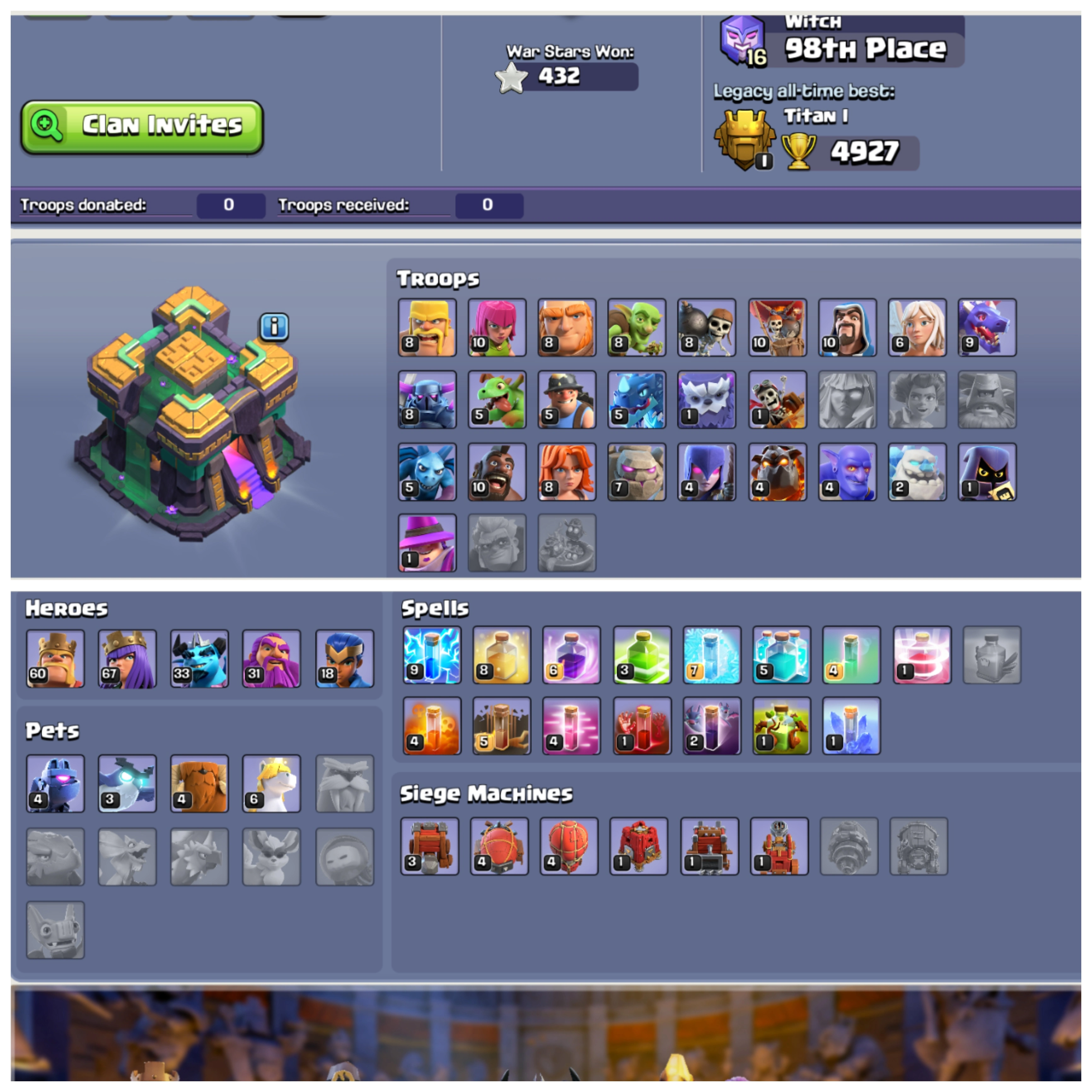 🧱 TH 14 Semi Max 🌟 Rare: 2100+ CWL Medals ⚒️ Heroes: BK60 AQ67 MP33 GW31 RC18 ✨ Name Changeable 🎁 Full Stacked Magic Items ⚡ Instant Delivery