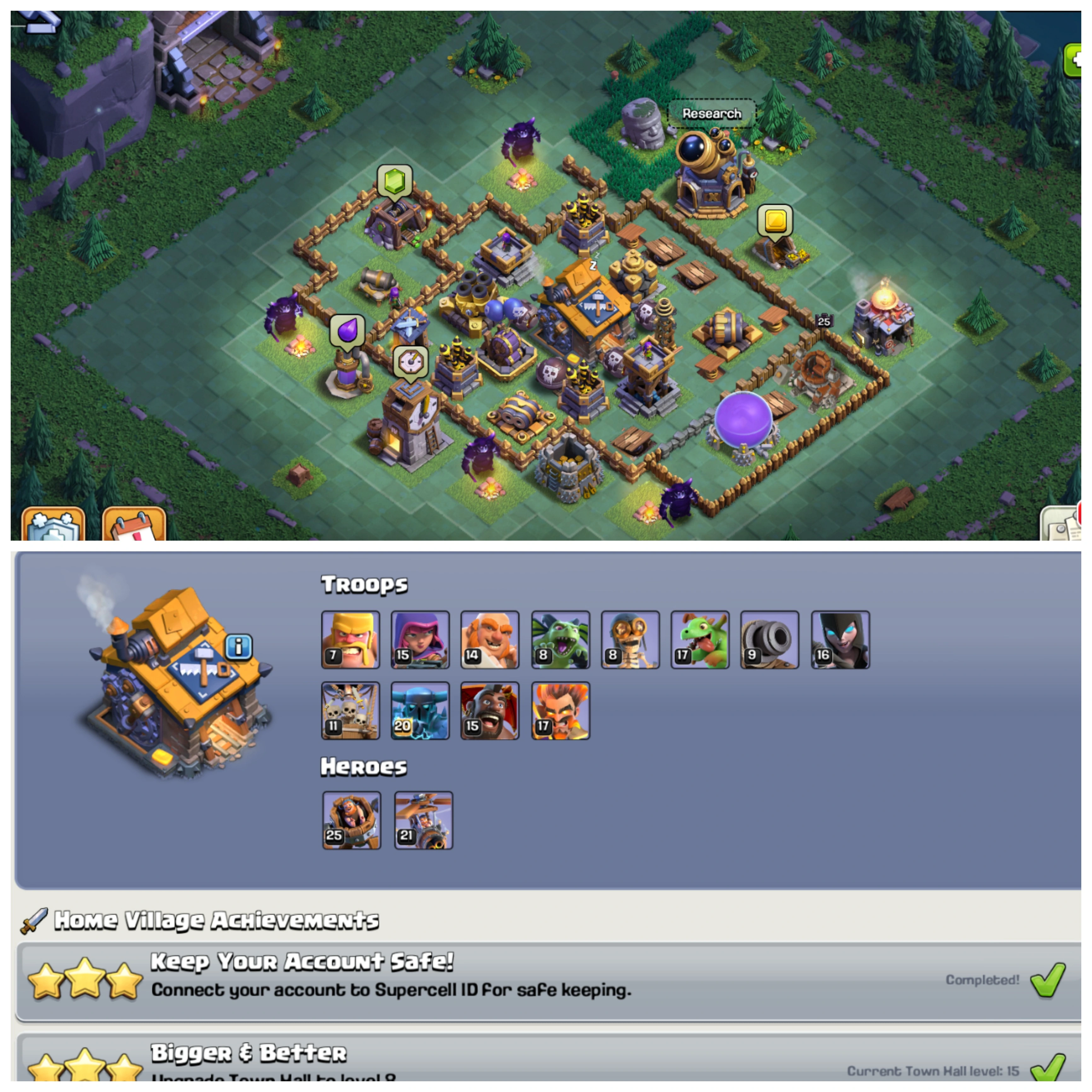 TH 15 Almost Maxed Out 🛝 4600+ Gems & 11 Epic Equipments 🛝 Heroes Almost Max 🛝 600+ CWL Medals 🛝 Free Name Change 🛝 Instant Delivery