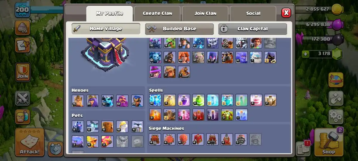 TH 15 DEFD MAXđ„FREE CHANGE NAMEđ„HEROES 75-84-51-58-29 FULL EPIC EQUIPMENTđ„MENDALS 490đ„MAGIC ITEMS READYđ„MAGIC & JUNGLE & CLASH RAMA SCENERYđ„FULL ACCESS ACCOUNTđ„