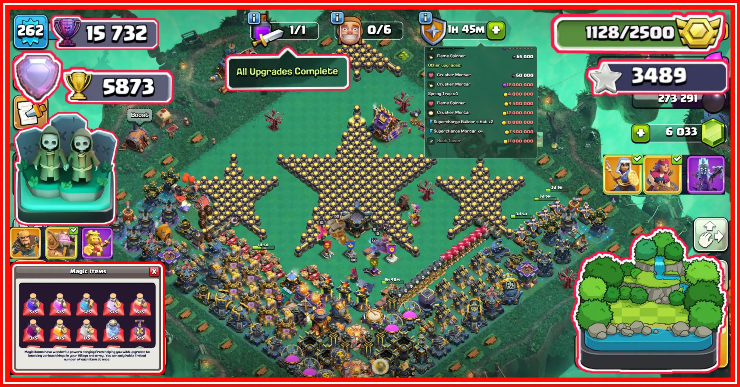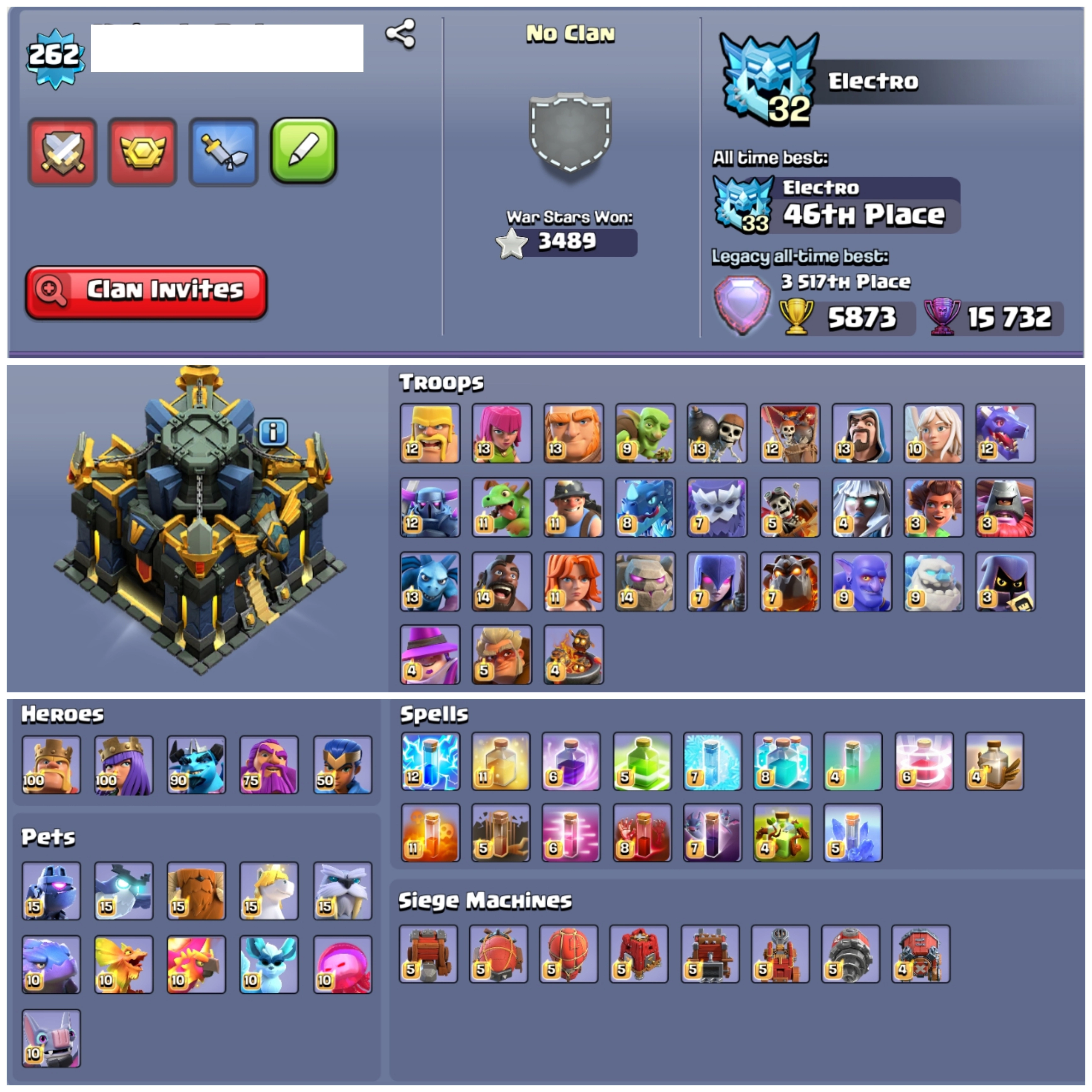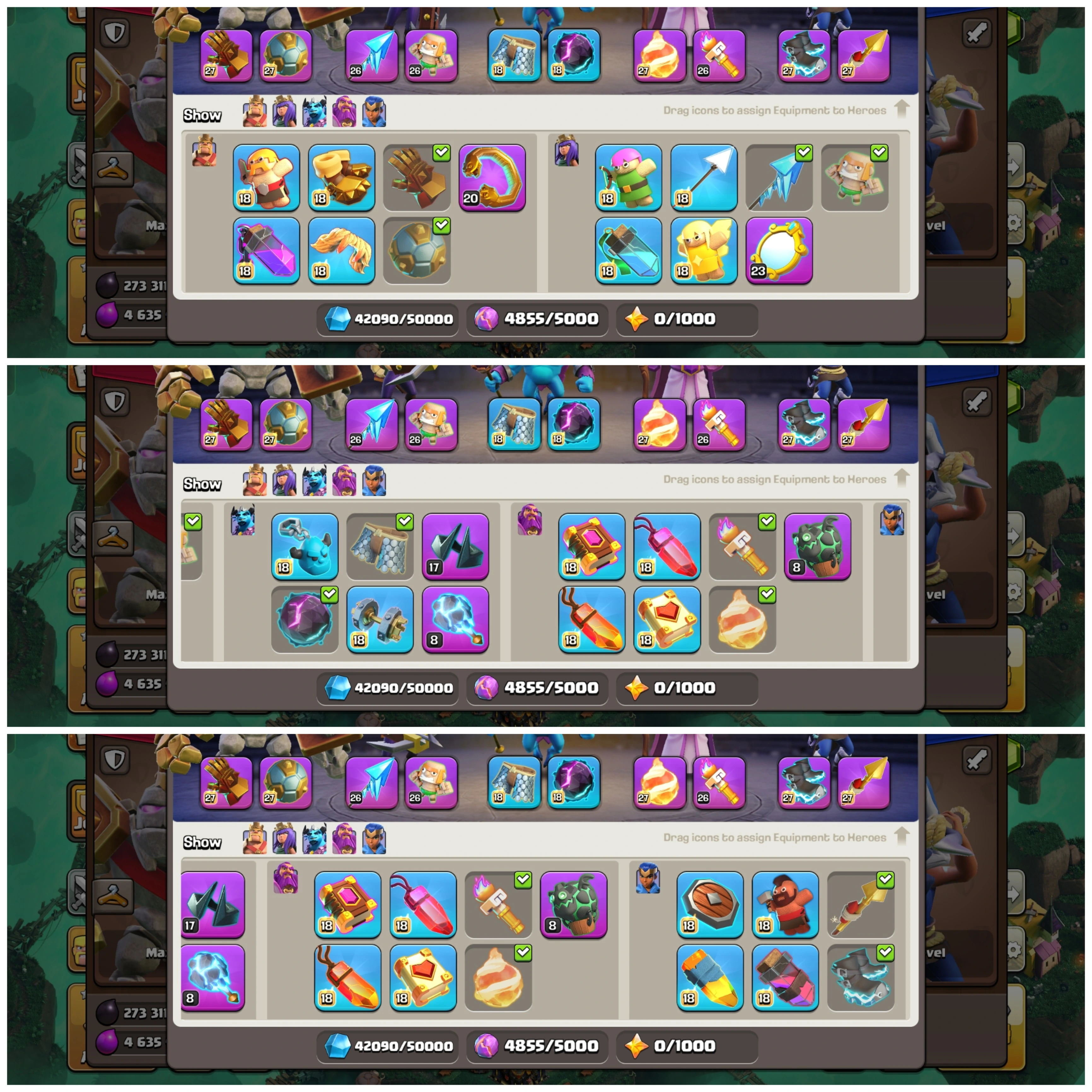 💎 TH 17 99% Maxed Out 💰 6000 Gems 🏆 15.7K Legend Cups 🧬 Rare All 13 Epic Equipments ⚗️ 25 Max Equipments 🎁 Fully Stacked Items/Medals ⚡ Instant Delivery