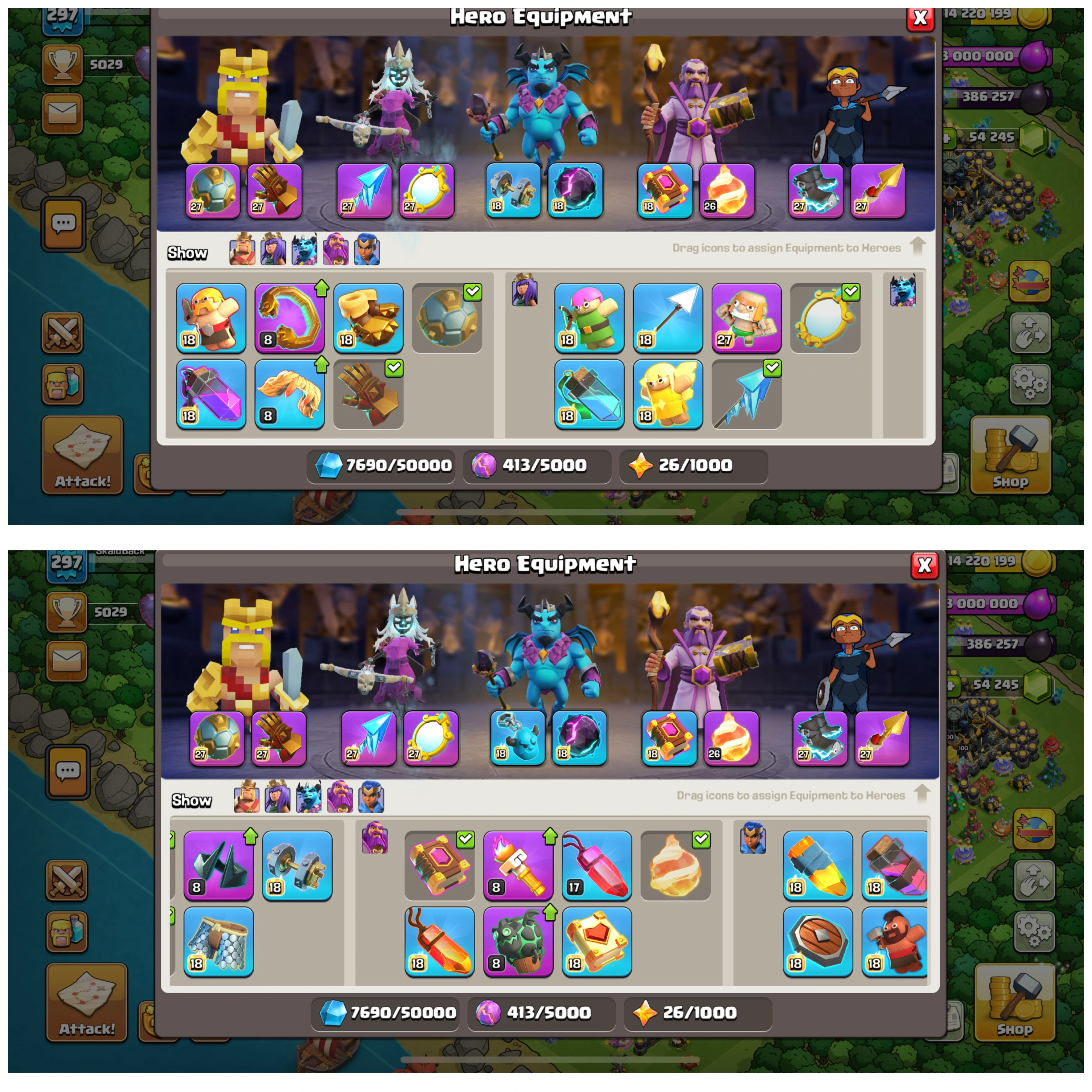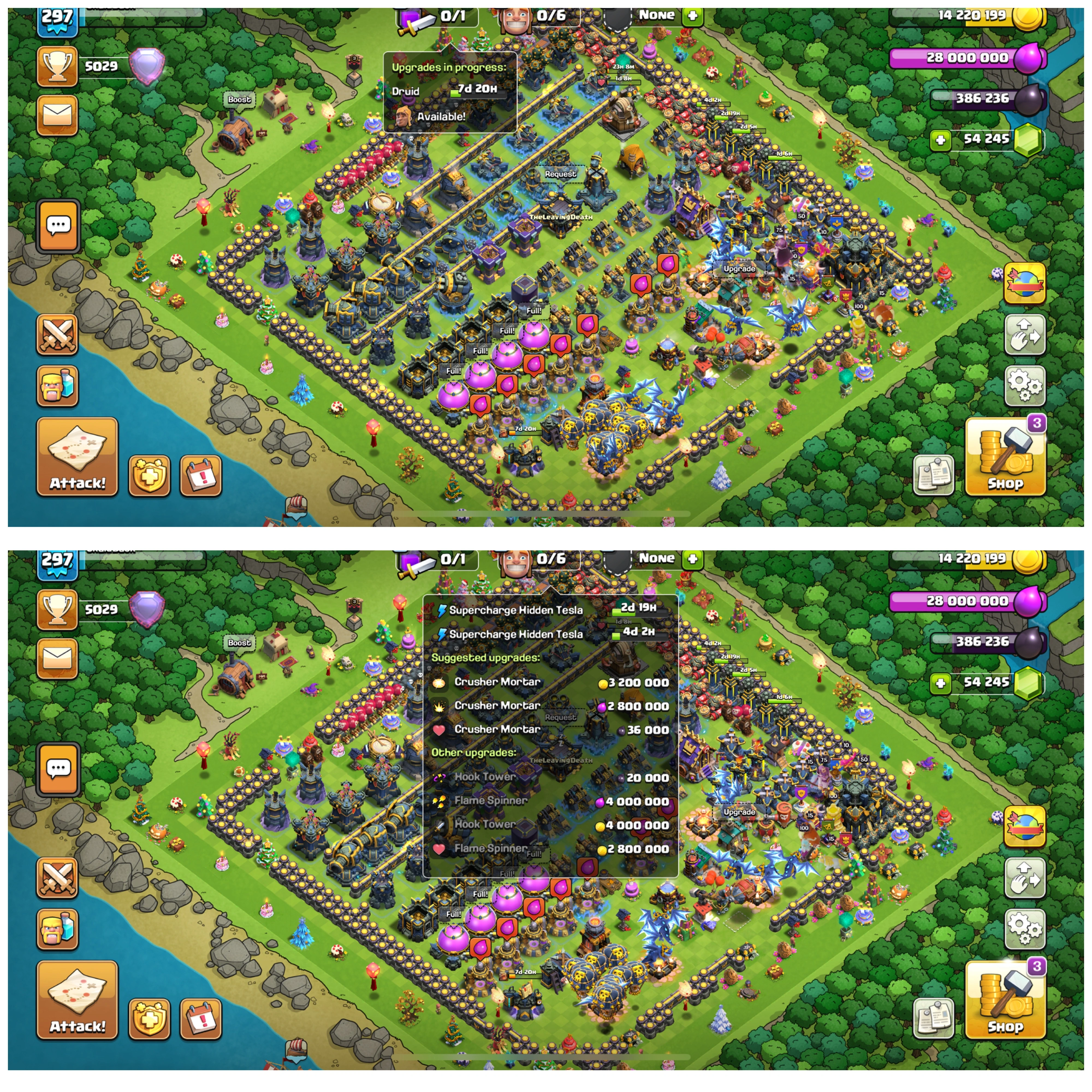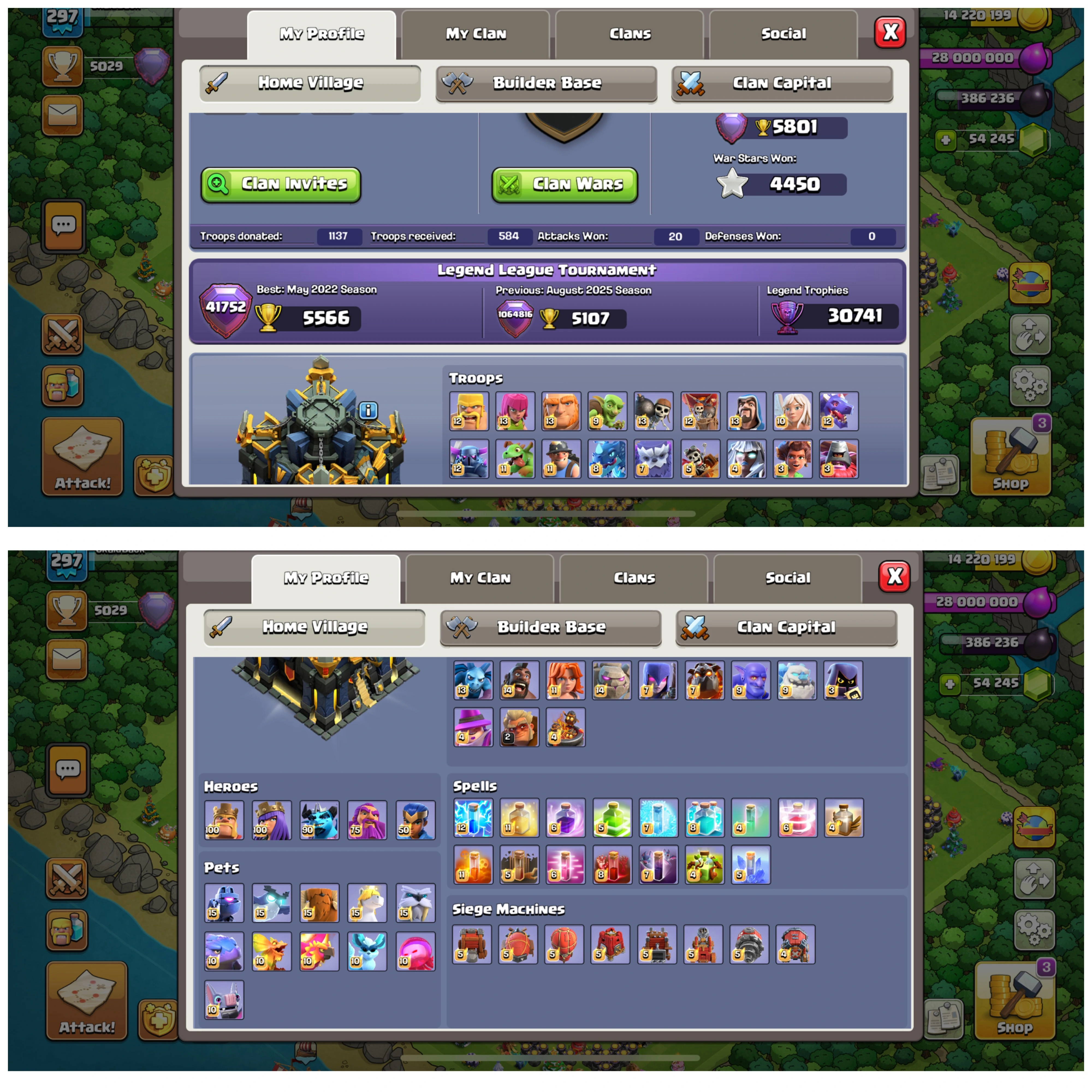 TH 17 BOTH VILLAGE FULLY 100% MAX✅54.3K GEMS (HIGH GEMS)✅XP-297 (HIGH XP)✅EPIC-8 & EQUIVALENT MAX-26)✅ CLASH OF DRAGON ✅ 30.7K LEGEND TROPHY✅LEGEND LEAGUE NOW✅4450 WS✅845 MEDEL