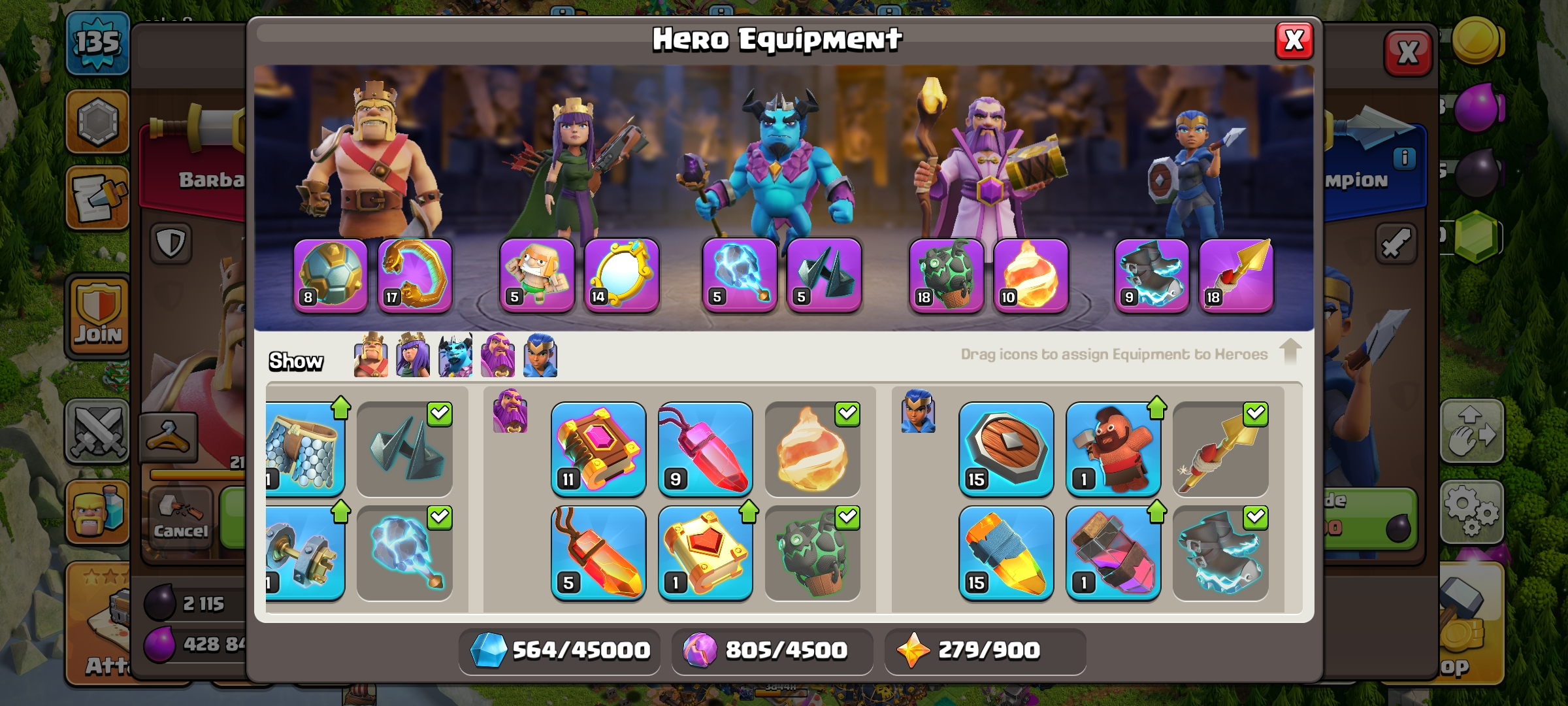 TH 17 RARE~HERO EQUIPMENT EPIC FULL~HERO BIG AND TALL- XP 135 /BK 51-/AQ 76/PM 40 /GW 20-/RJ 21/LOG SUPERCELL ID-/Andoid and ios|SCREENSHOTS ON DESCRIPTION