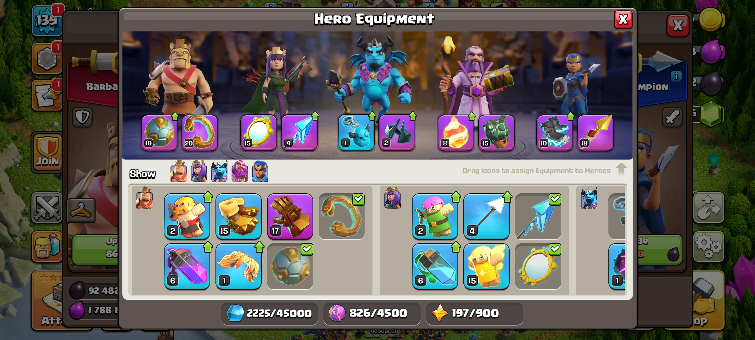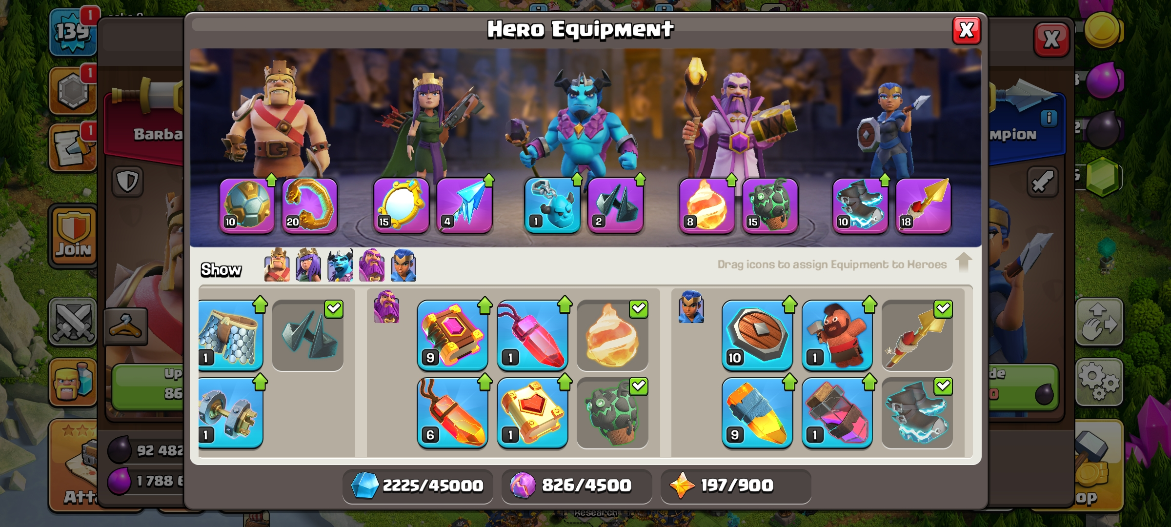 TH 17 RARE~HERO EQUIPMENT EPIC FULL~HERO BIG AND TALL- XP 139 /BK 50-/AQ 75 /PM 40 /GW 21-/RJ 24-/LOG SUPERCELL ID-/Andoid and ios|SCREENSHOTS ON DESCRIPTION