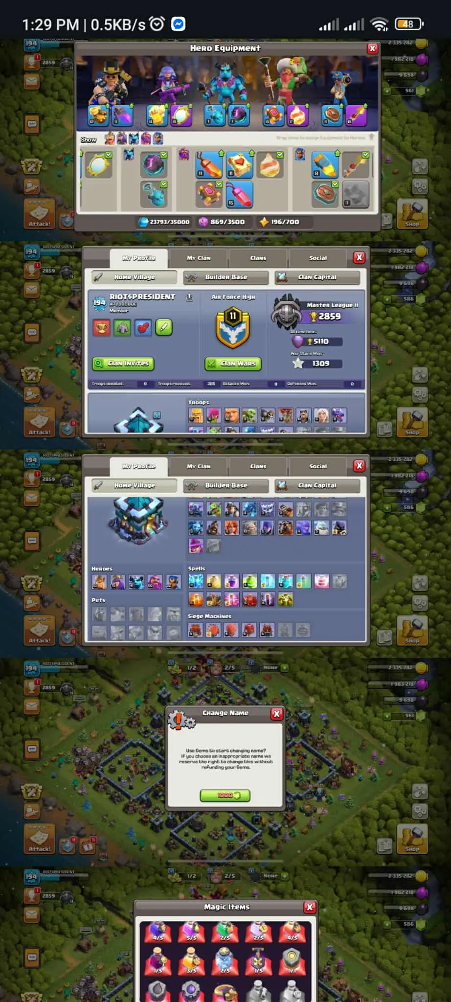 TH13 MAX ID | FIREBALL, MAGIC MIRROR, ROCKET SPEAR | HERO'S: 63-75-41-50-22 | XP-193 | DARK BLUE WALL | 7 SKIN | 1.3K+ WAR STAR | LEGEND HIT