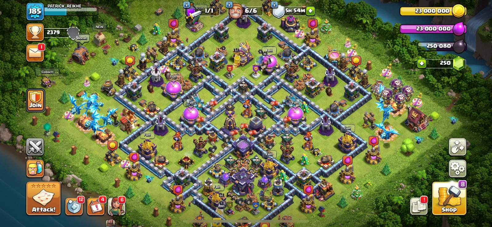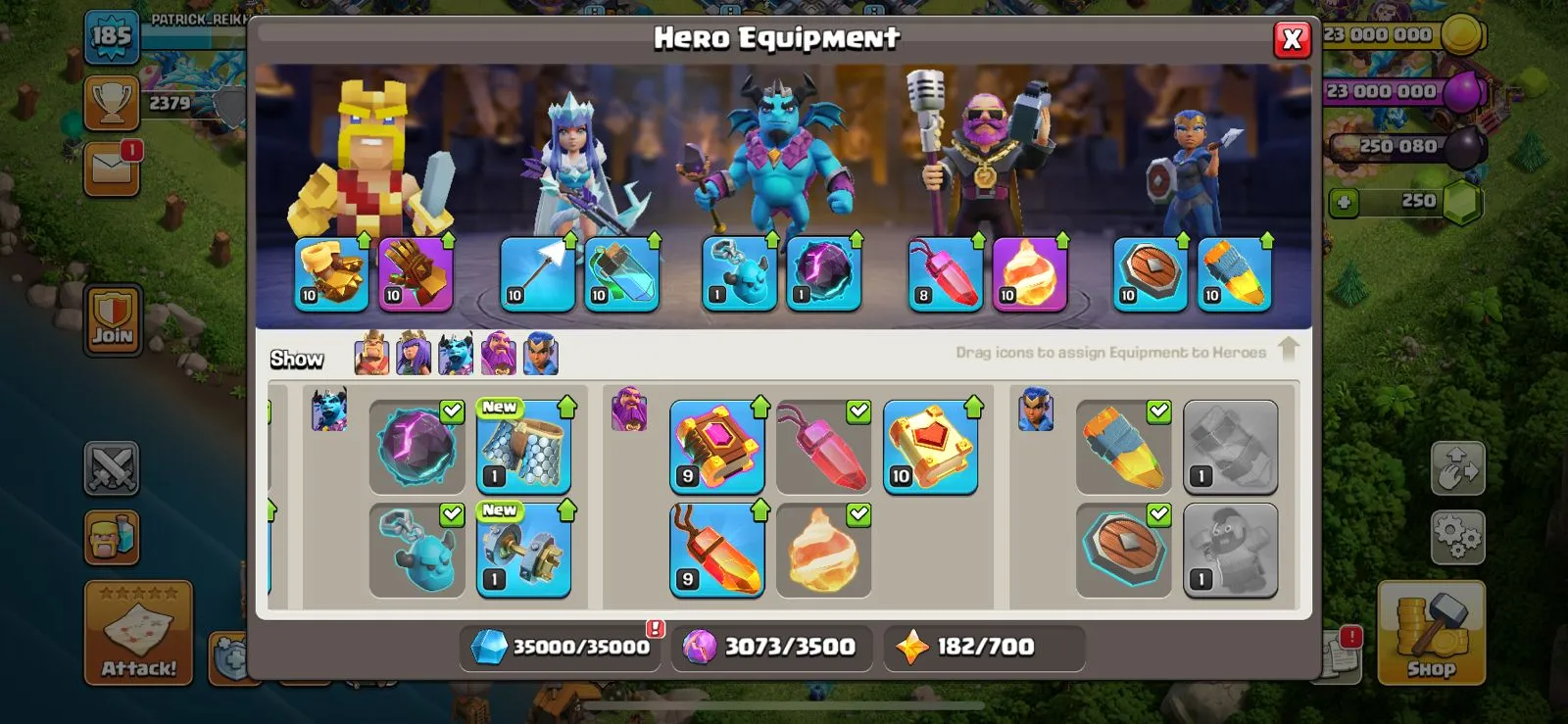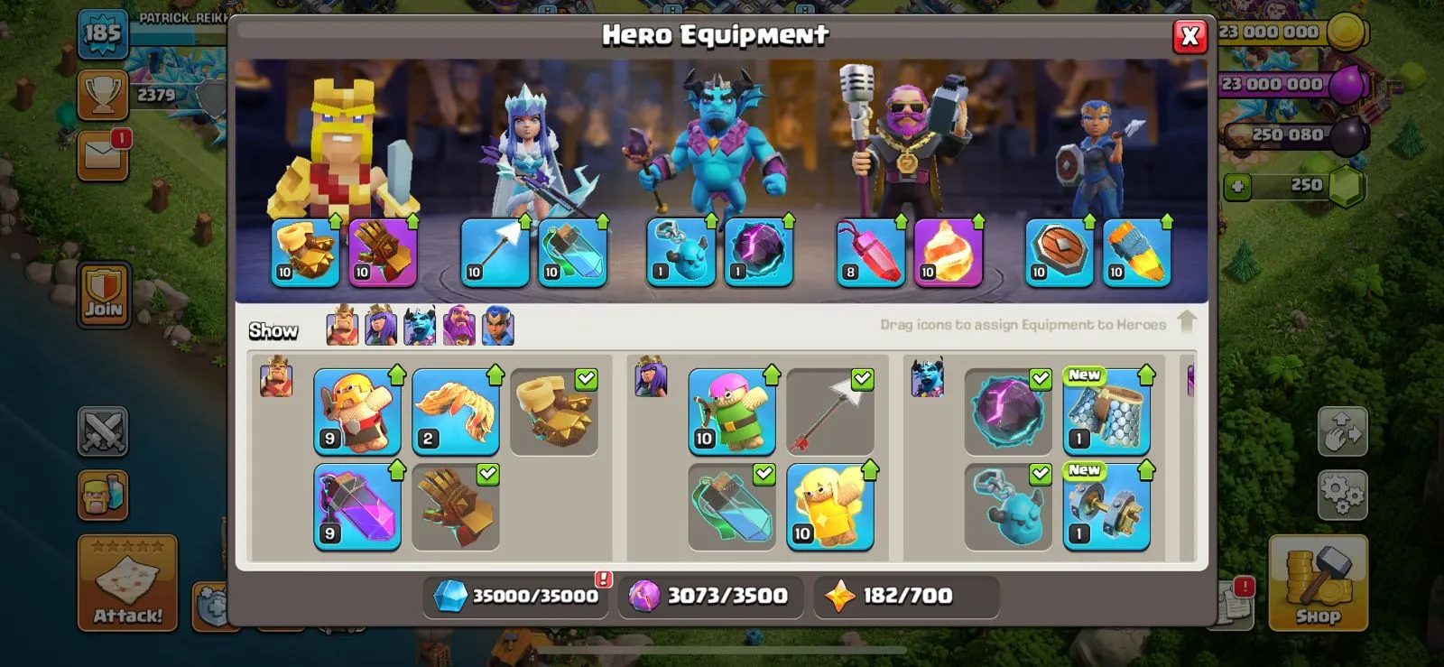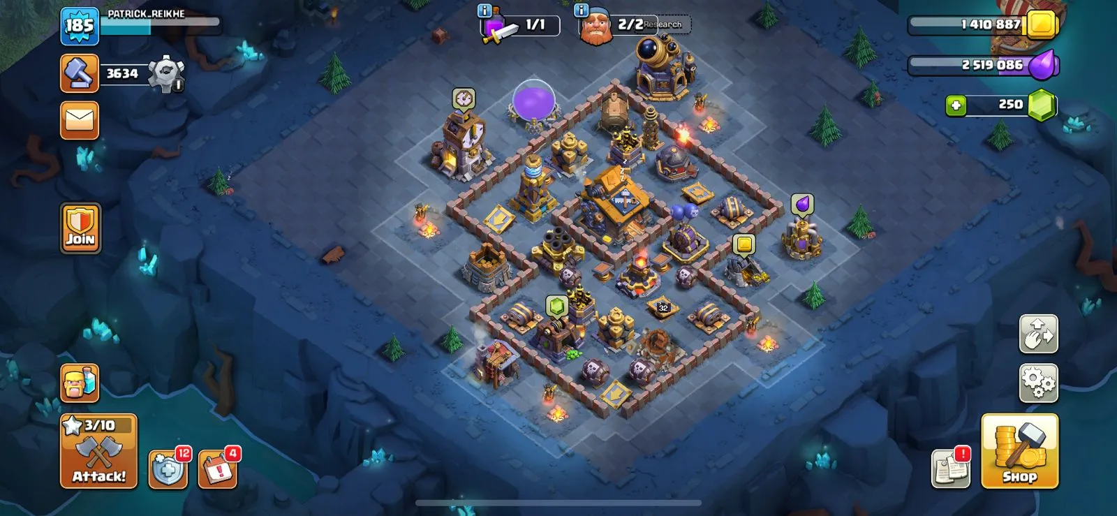 TH15 Powerhouse 🌟 5 Skins 🎭 + 2 Epic Equipments 🗡️ XP 185 ☃️ Heroes BK57/AQ66/MP41/GW36/RC19 🛡️ Instant Delivery ⚡