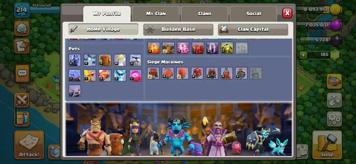 TH17 MAX | 1 SCENARY | HERO 56-100-60-51-50 | 2 MAX HERO | HIGH LAB | DEFENSE MAX | 7 EPIC EQUIPMENT | FIREBALL MAX | NC ok | Z3