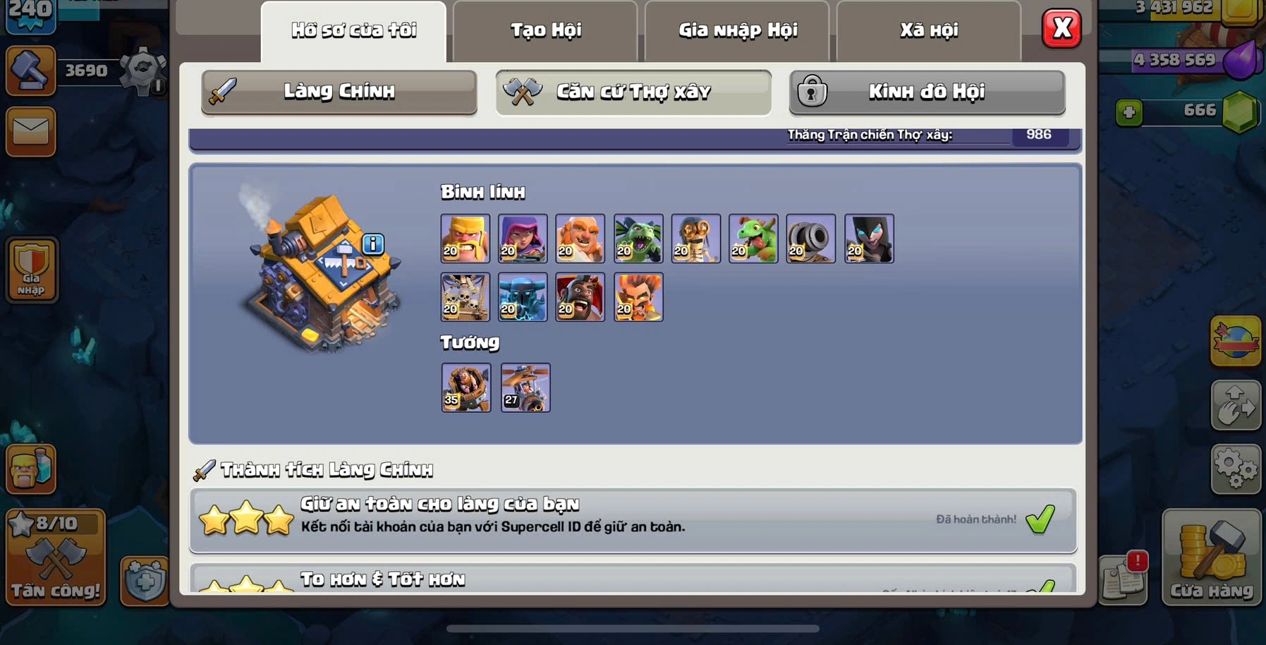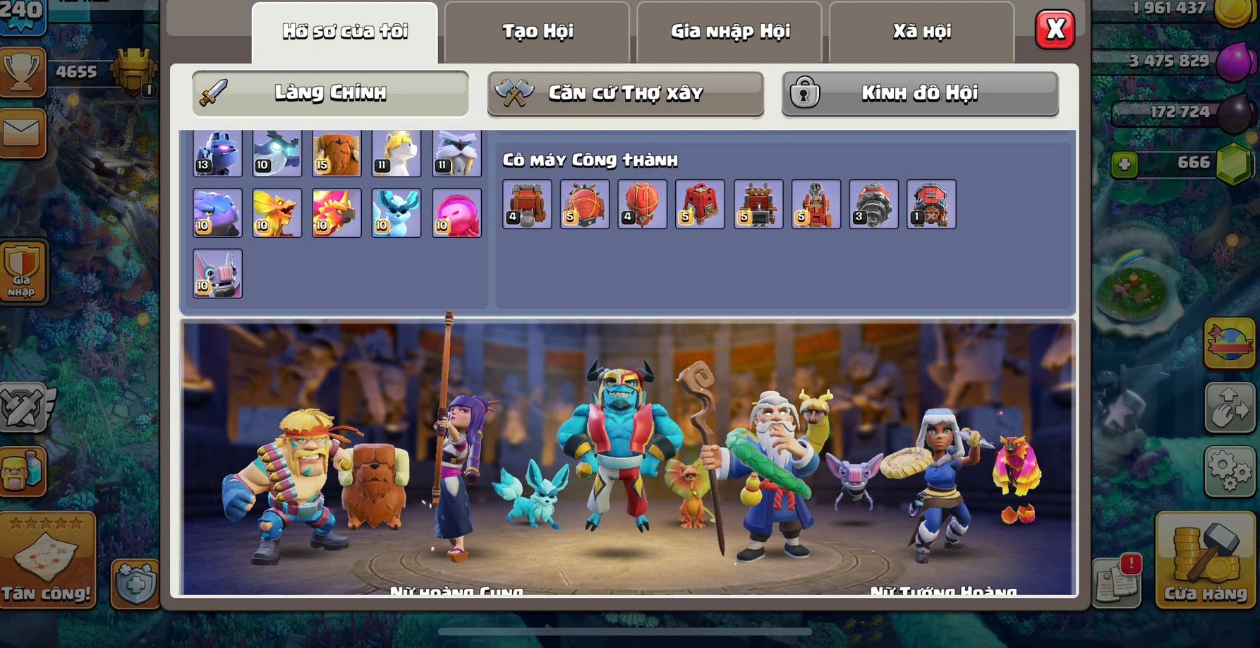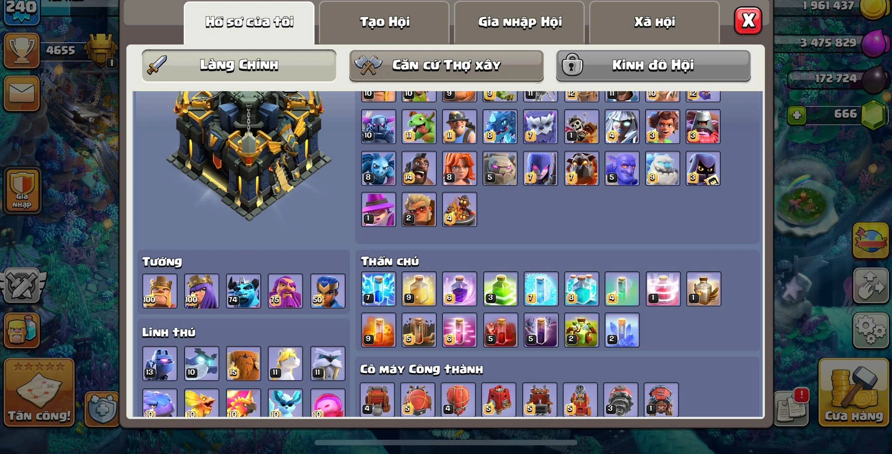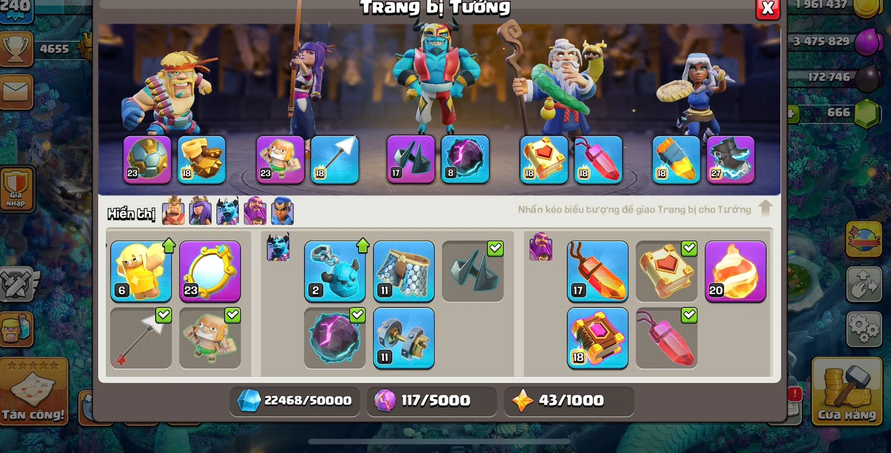 TH17 MAX WALL 17- MAX 4 HEROES-MAX BUILDING- MAX EQUIPMENTS- MAX PETS AND TROOPS-SOME SKINS-1019