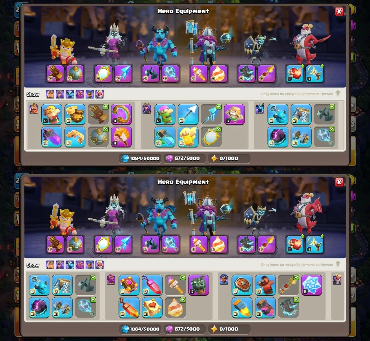 TH18 Almost Max [Almost Full Profile Max] 👑 Hero-105-105-92-80-55 👑 Equipments-10x-Epic Max 👑 War Star 5193 👑XP-254