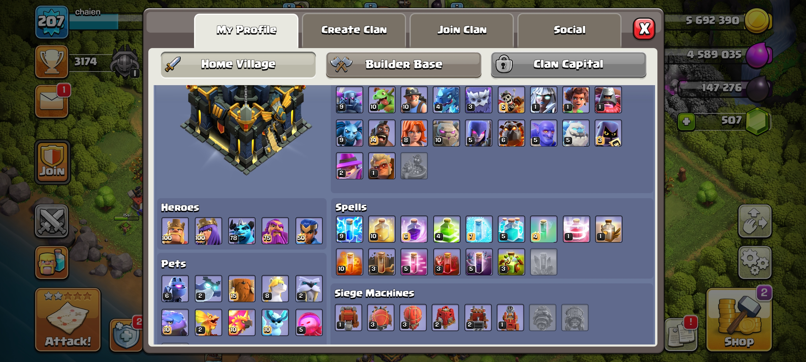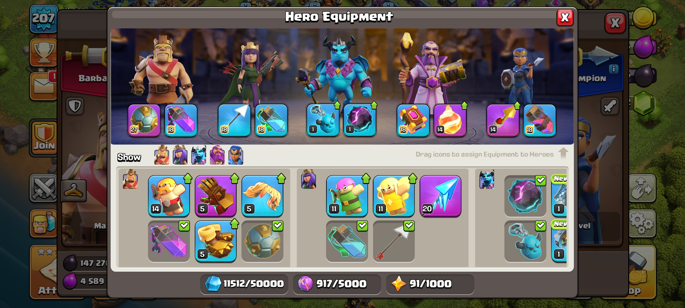 Top 5X Hero Almost max-Giant Gauntlet Max-Th17-Xp207-Hero 100-100-78-75-50-627 Madel-6 Builder-Magic Items-Nc 500