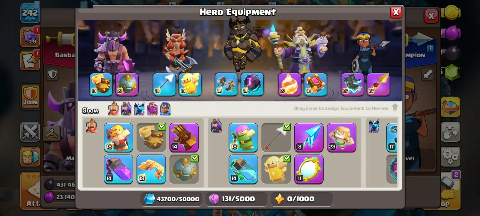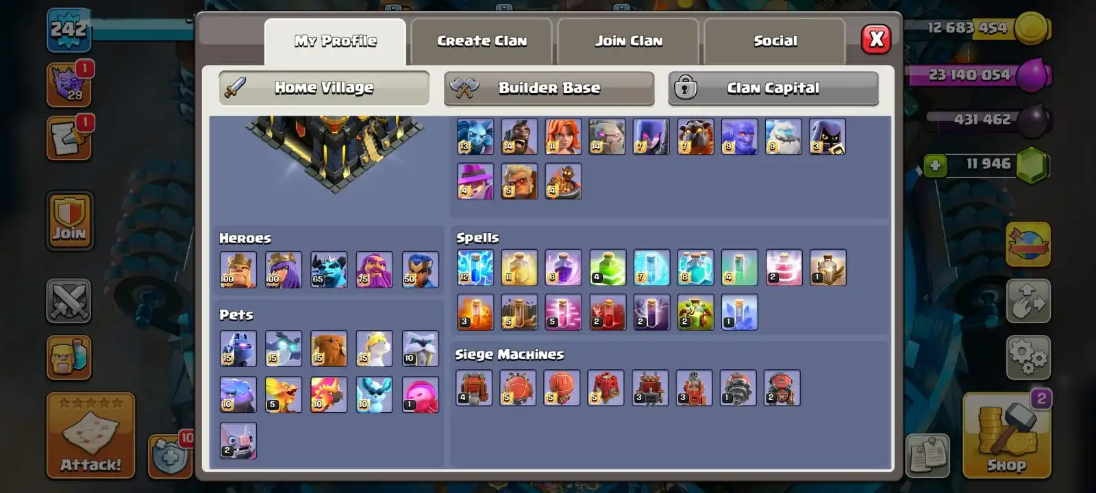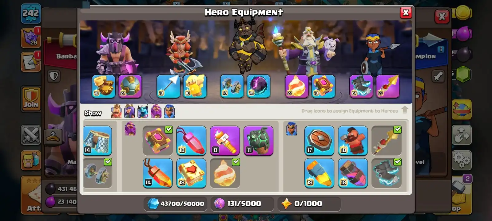 VERY RARE [ 4 EPIC EQUIPMENT MAX & GEMS 11 946 ]🔥TH 17 MAXED DEFENCE🔥HEROES MAX 100-100-65-75-50 FULL EPIC EQUIPMENT🔥MAGIC ITEMS READY🔥5 SCENERY🔥BUILDER HALL FULL MAX🔥FULL ACCESS ACCOUNT🔥