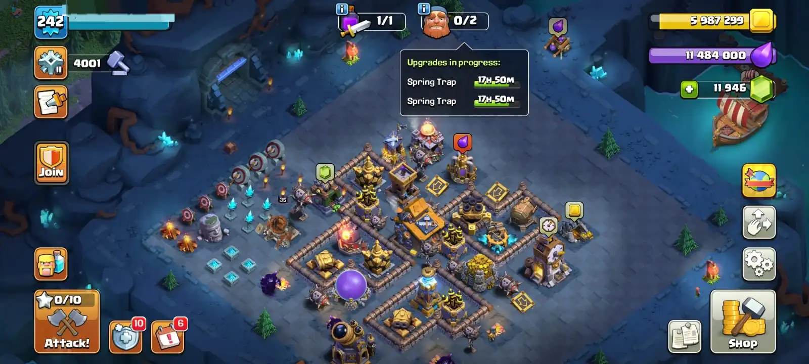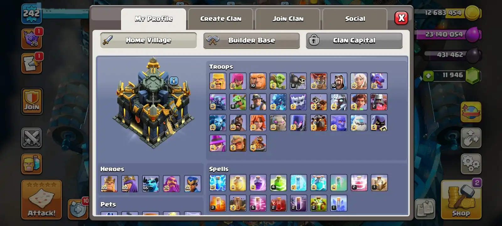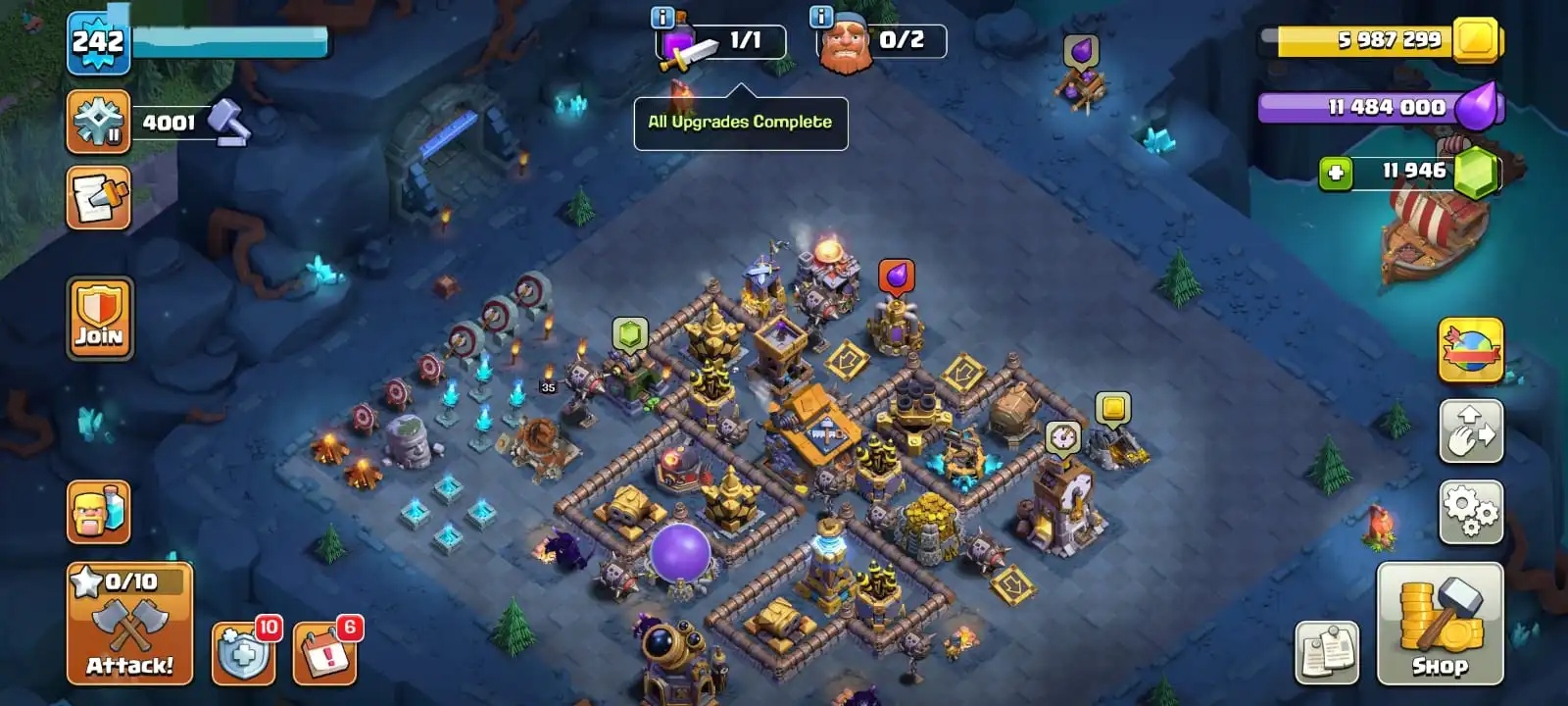 VERY RARE [ 4 EPIC EQUIPMENT MAX & GEMS 11 946 ]🔥TH 17 MAXED DEFENCE🔥HEROES MAX 100-100-65-75-50 FULL EPIC EQUIPMENT🔥MAGIC ITEMS READY🔥5 SCENERY🔥BUILDER HALL FULL MAX🔥FULL ACCESS ACCOUNT🔥