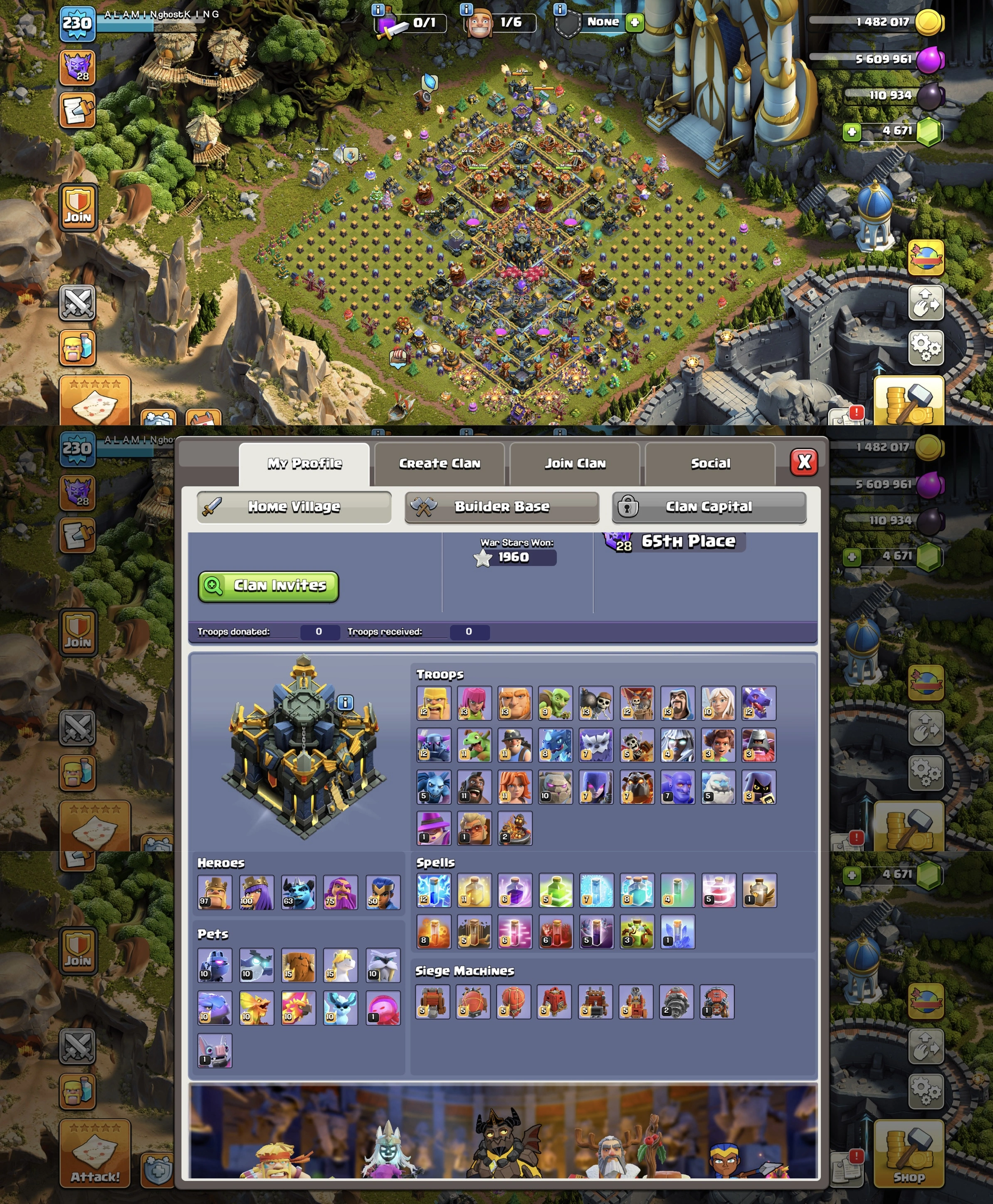【Young Player Account】➢Th17 Max 100%➢5 Hero Max➢9 Epic Max Type➢Leauge Warden+War Arena +COD Scenery➢3 Helper Max➢XP-230➢BB 10 Max➢Full Ownership (K32)