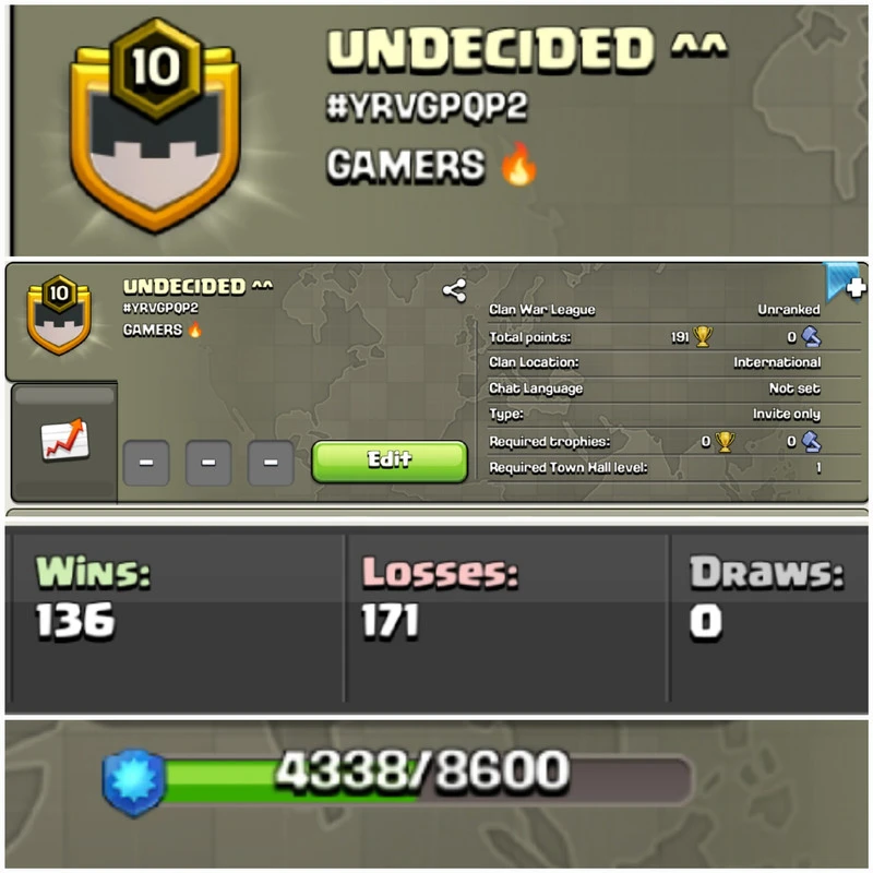 Req nd Go !! LEVEL 13 !! WIN 229 LOSS 147 !! GOLD 1 !! BEST CLAN !! DEMANDING NAME !! AFFORDABLE !! INSTANT DELIVERY