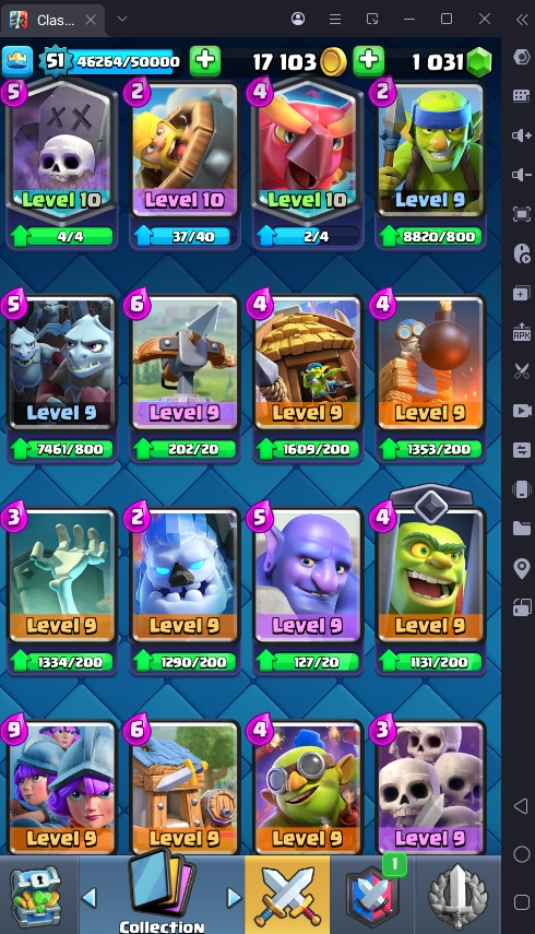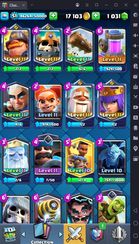10145 TROPHY 🏆 51 LVL 💯 KT 14 👑 121 CARDS ♦️ 16 MAX CARDS 👑 4 ELITE CARDS 🔮 5 EVO 💯 EMOTE 32 🎭 #9YQPQCQV ⸱ TAG ACCOUNT ♥️