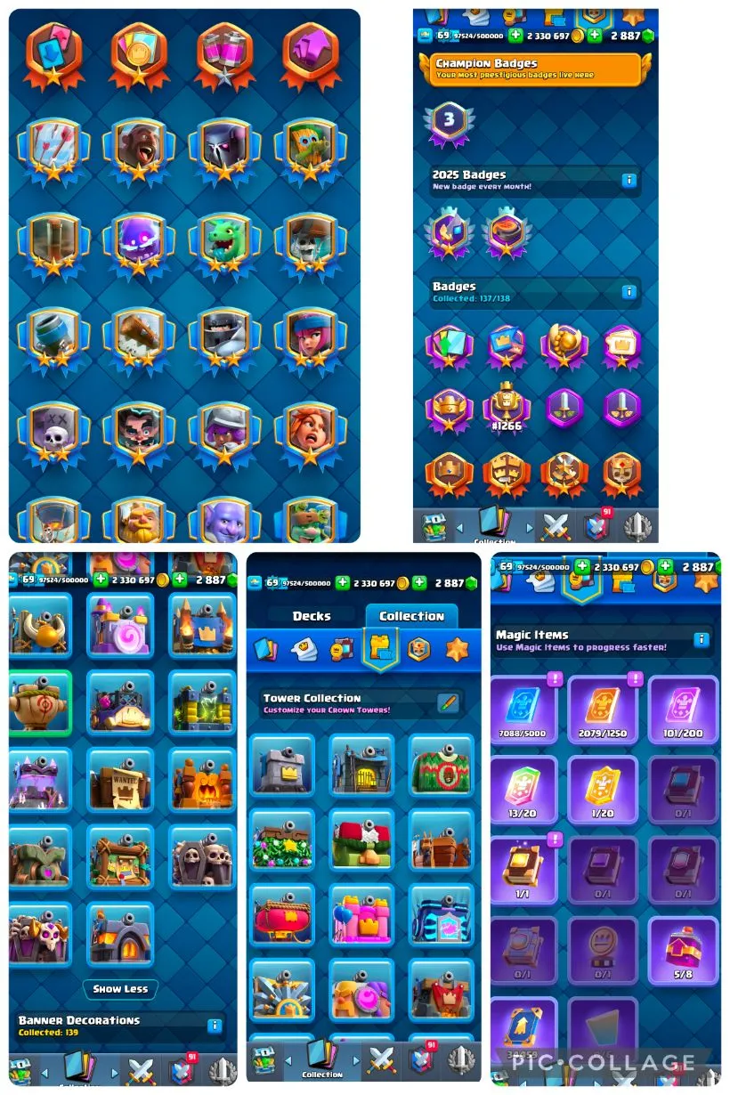 【85 Elite Max➺33 Evo Max】💥119 Card Max 100%💥12000 Trophy 💥Ultimate Champion💥【25 Tower Skin+187 Rare Emote】💥69 Lvl💥Full Access(3698)